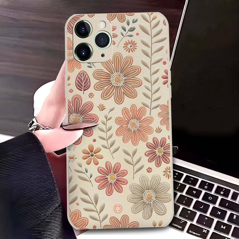 iPhone 11 Pro Max Cover - Off White - D4 - ONation Floral Series - HQ Liquid Silicone Soft Case