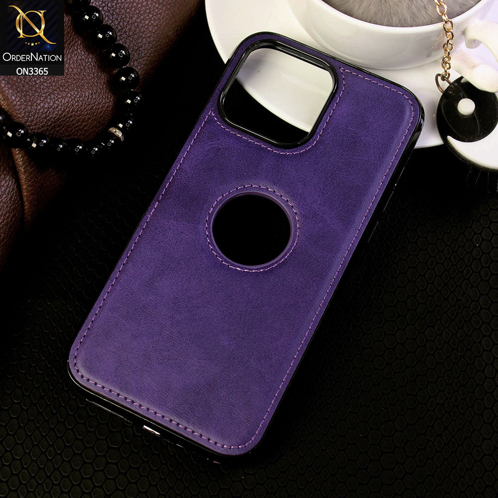 iPhone 11 Pro Max Cover - Purple - Vintage Luxury Business Style TPU Leather Stitching Logo Hole Soft Case