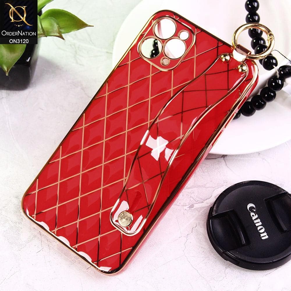 iPhone 11 Pro Max Cover - Red - Luxury Gold Plating Diamond Cut Wristband Holder Soft Shiny Silicone Case