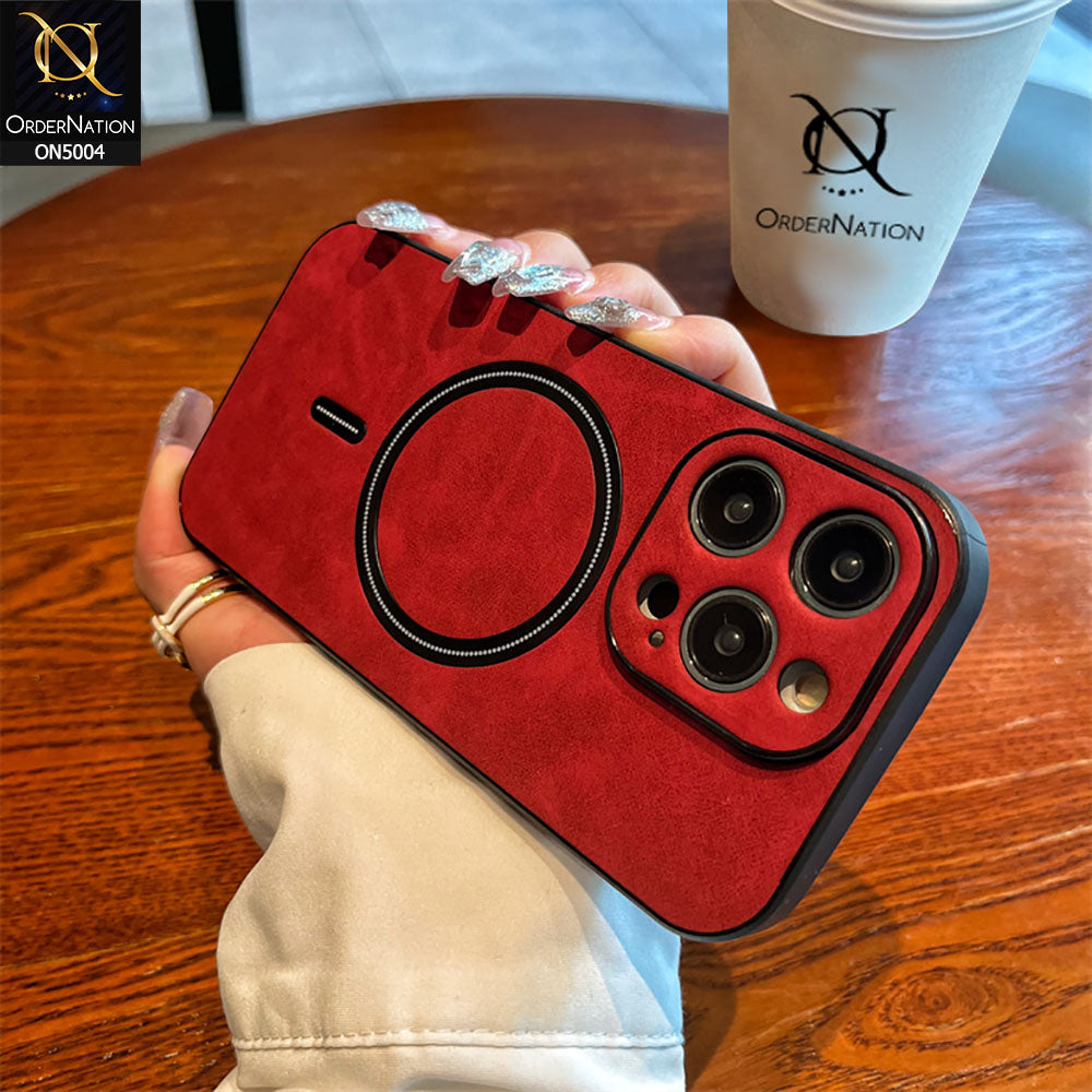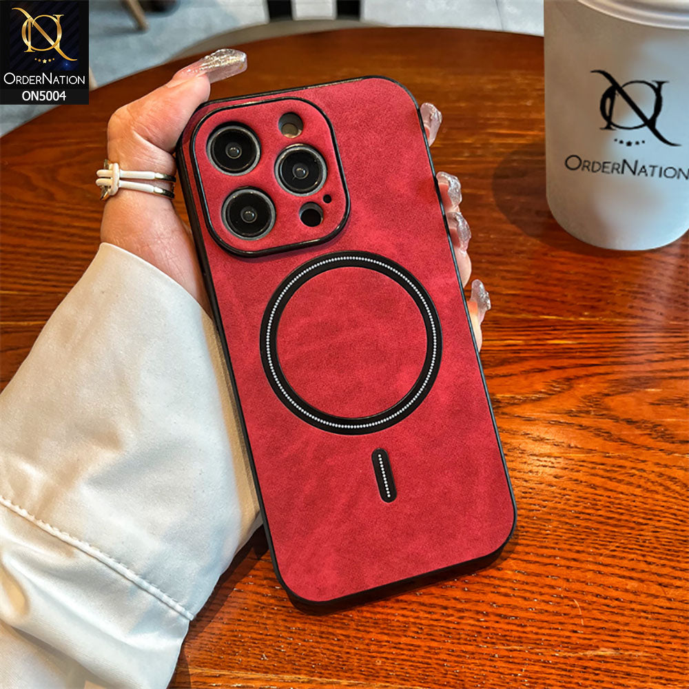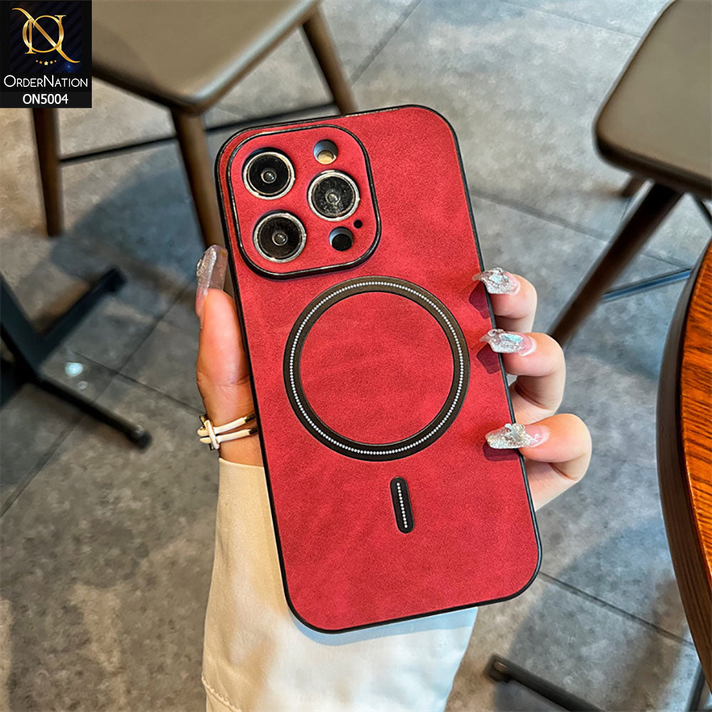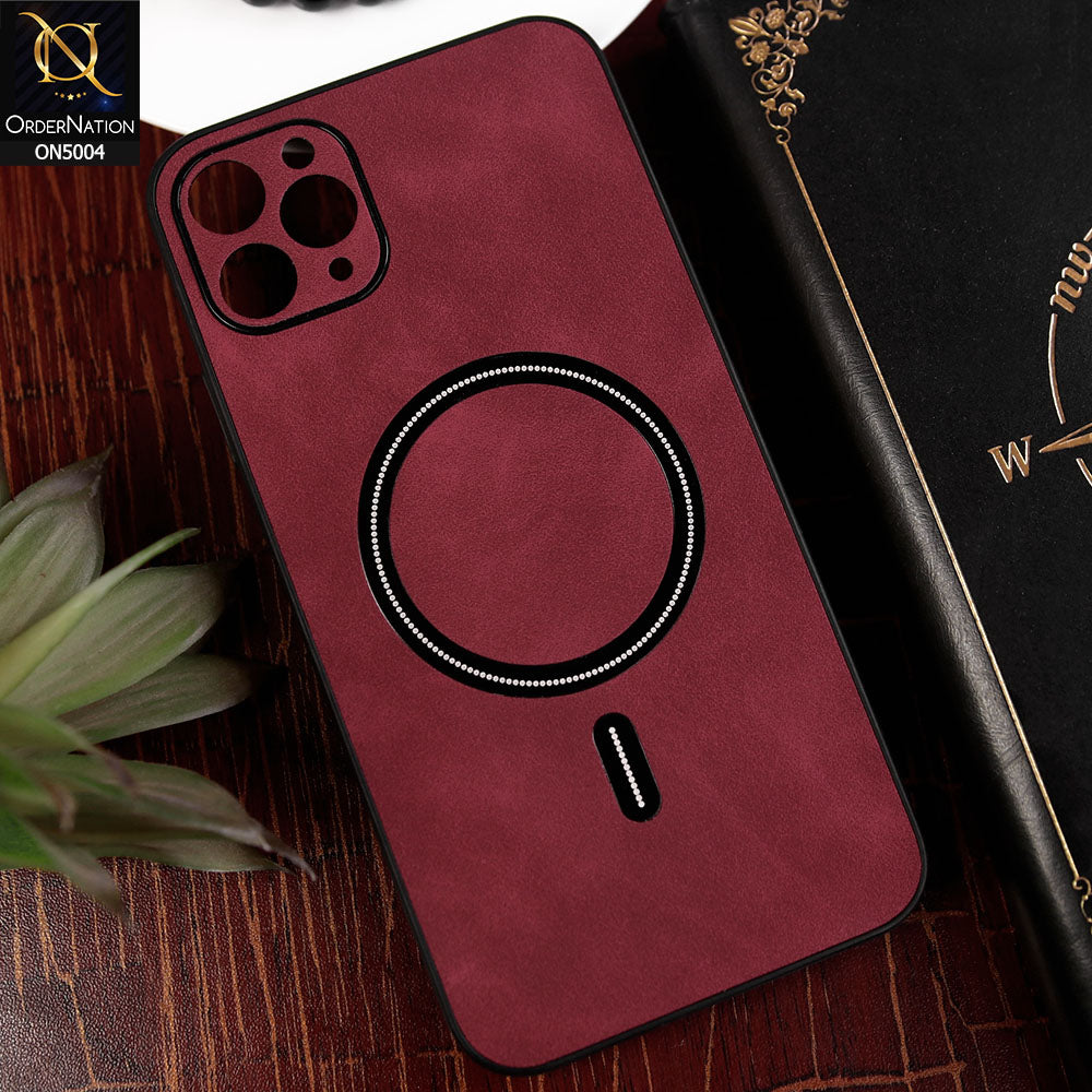 iPhone 11 Pro Max Cover - Red - New Luxury Matte Leather Magnetic MagSafe Wireless Charging Soft Case