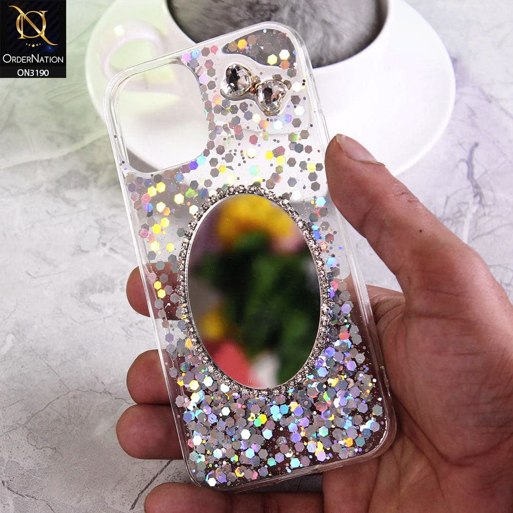 iPhone 11 Pro Max Cover - Silver - Shiny Diamond Makeup Mirror Buling Crystal Bow Glitter Soft Case -  Glitter Does Not Move