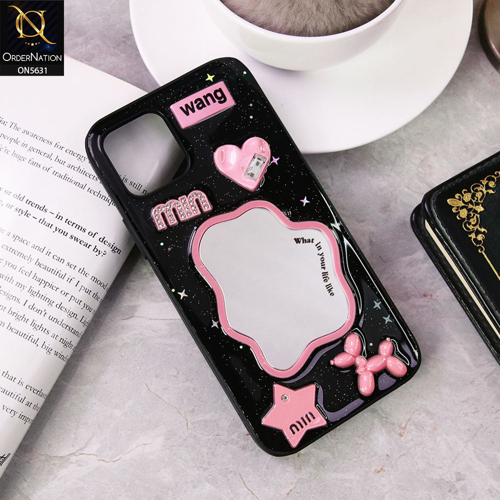 iPhone 12  Cover - Design 2 - 3D Cartoon Pink Love Heart Little Star Glossy Surface Case