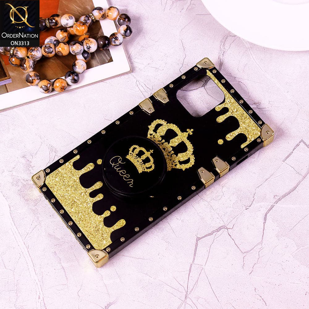 Infinix Note 7 Cover - Black - Golden Electroplated Luxury Square Soft TPU Protective Case with Popsocket Holder