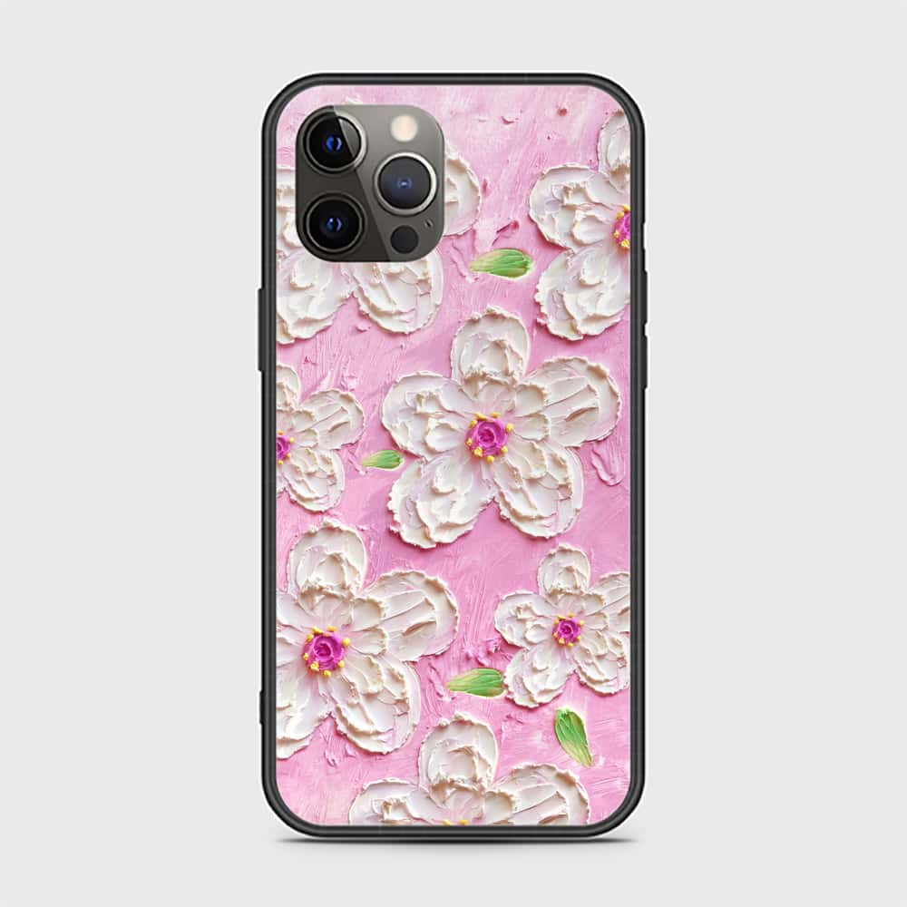 iPhone 12 Pro Cover - Floral Series - Design 5 - Pink & White - HQ Ultra Shine Premium Infinity Glass Soft Silicon Borders Case