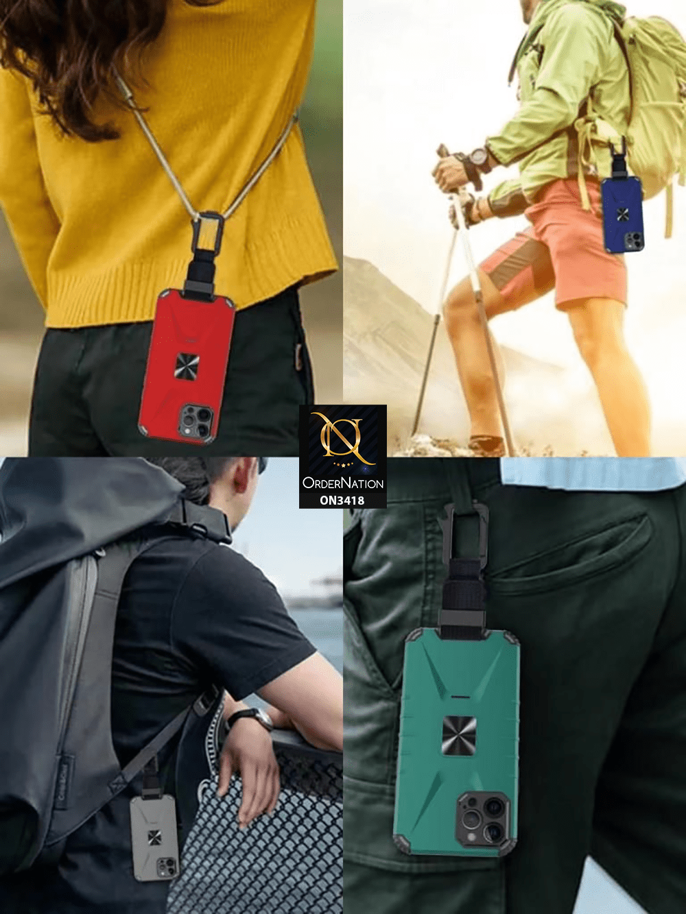iPhone 12 Pro Max Cover - Black - Heavy Duty Hybrid Anti Knock Shockprof Multi Use Carbiner Holder Protective Case