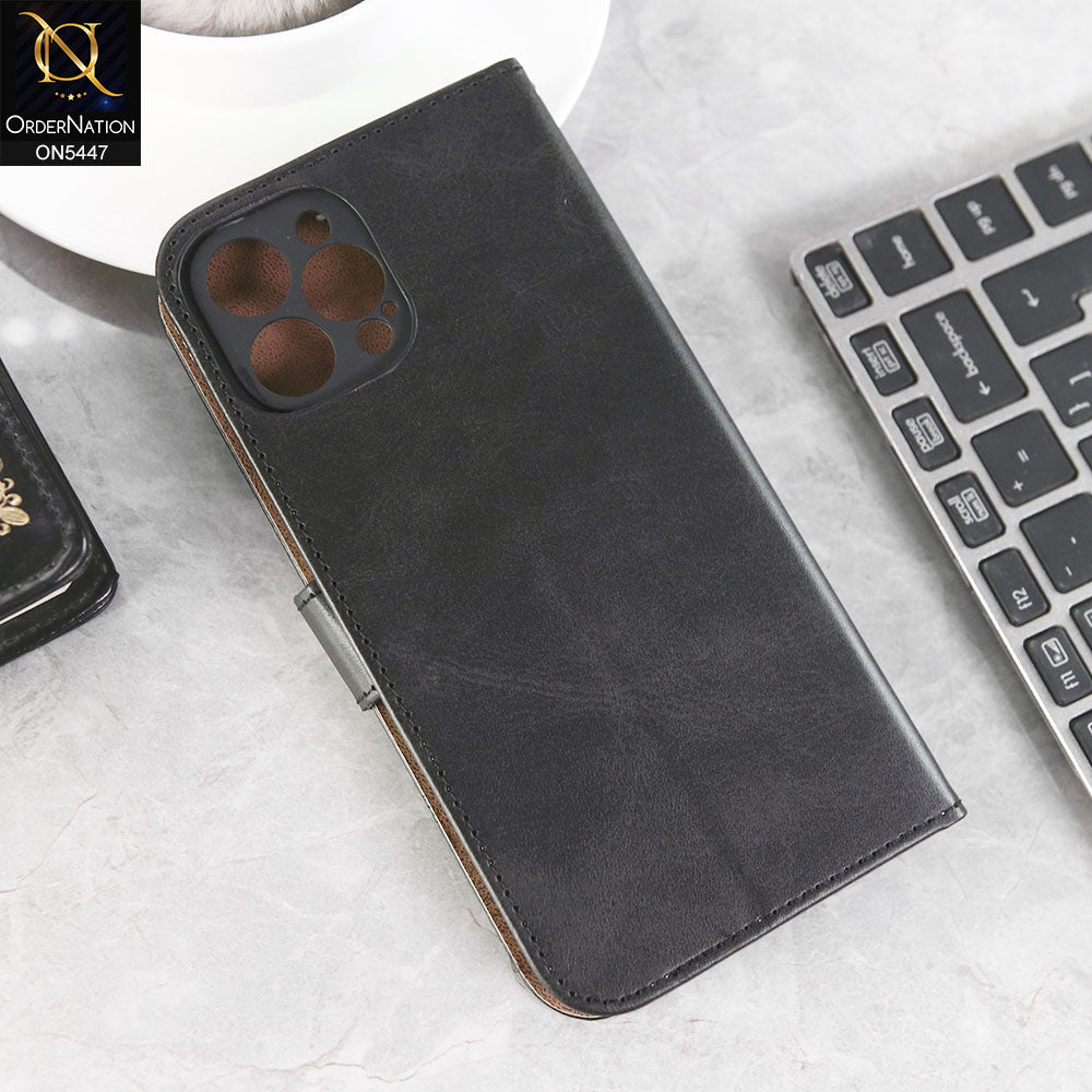 iPhone 12 Pro Max Cover - Black -  Premium Leather Megantic Flip Book Covers With Card Holding Option