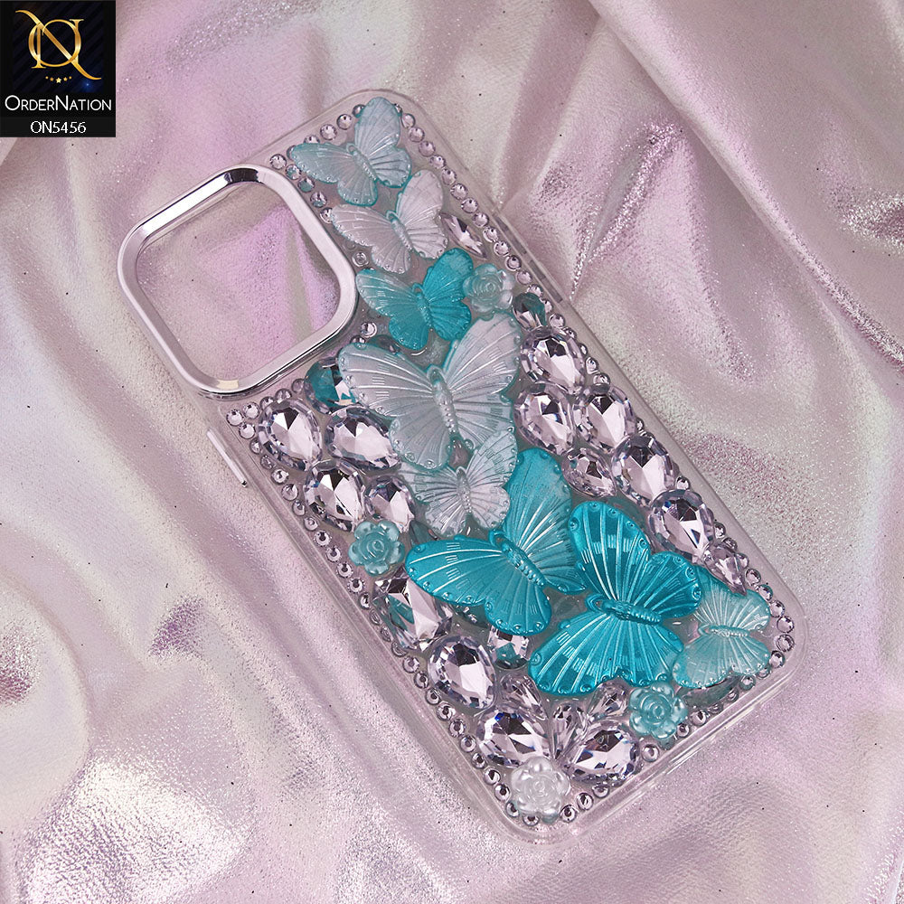 iPhone 12 Pro Max Cover - Cyan - Elegant 3D Dreamy Butterfly Shiny Rhinestones Protective Soft Case