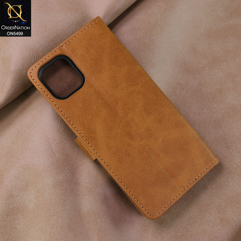iPhone 12 Pro Max Cover - Light Brown -  Premium PU Leather Magnetic Flip Book Card Slots Wallet Soft Case