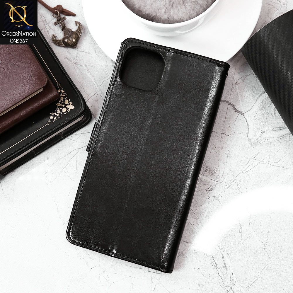 iPhone 13 Cover - Black - Premium PU Leather Magnetic Flip Book Card Slots Wallet Soft Case