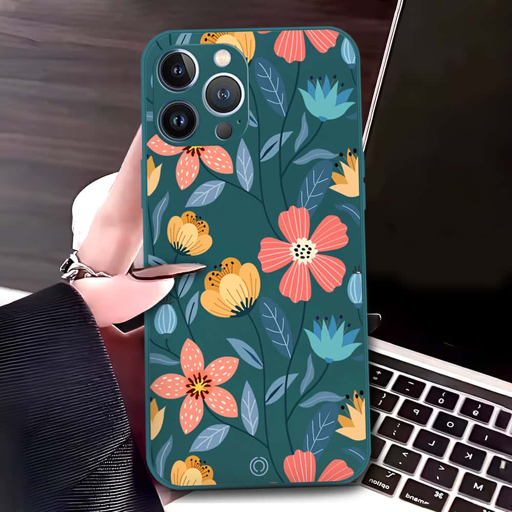 iPhone 13 Pro Cover - Dark Green - D2 - ONation Floral Series - HQ Liquid Silicone Soft Case