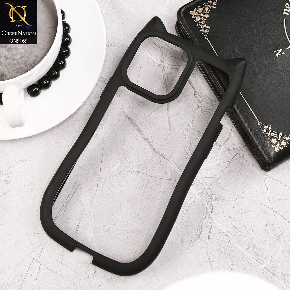 iPhone 13 Pro Max Cover - Black - Cute 3D Kawaii Cartoon Ears Clear Back Color Soft Borders Case
