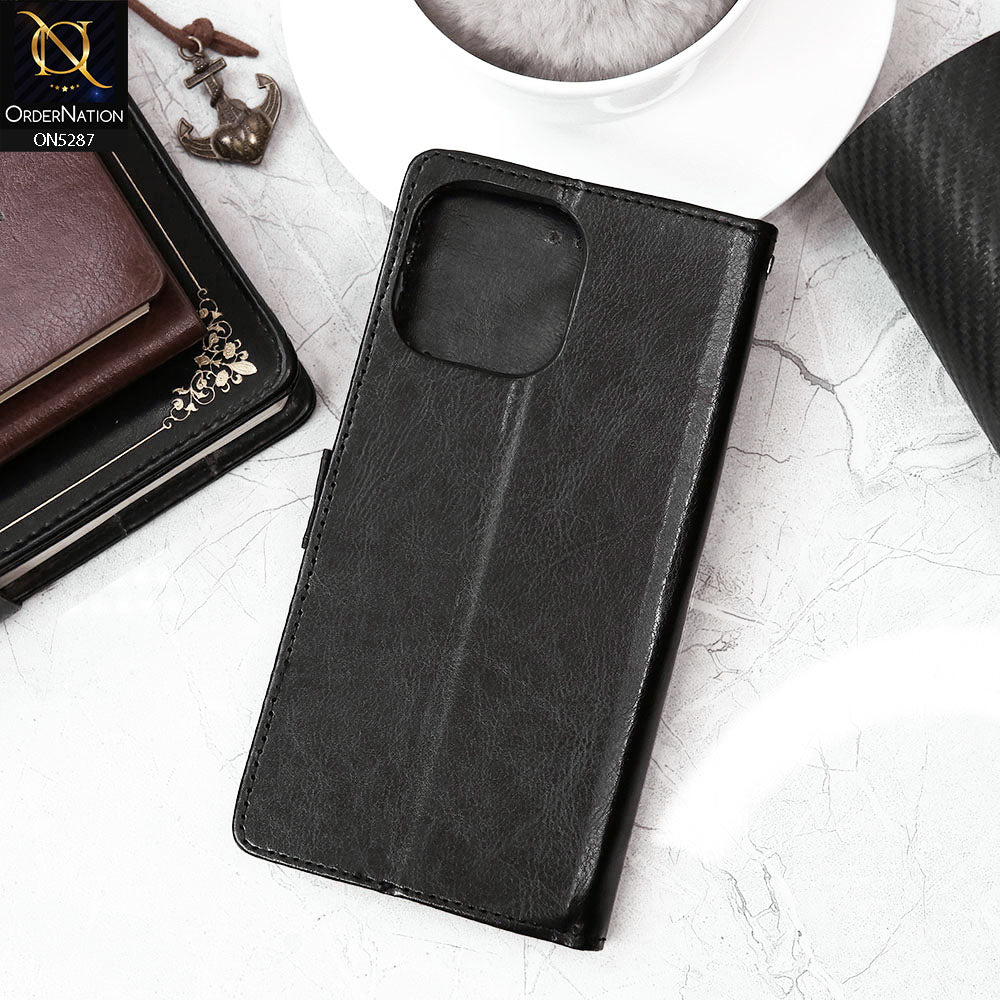 iPhone 13 Pro Max Cover - Black - Premium PU Leather Magnetic Flip Book Card Slots Wallet Soft Case