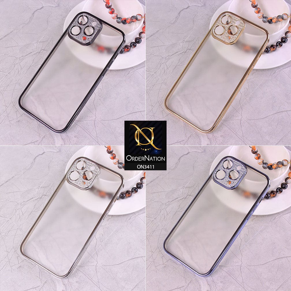 iPhone 13 Pro Max Cover - Silver - Electroplated Borders Glitter Camera Lens Protection Soft J-Case