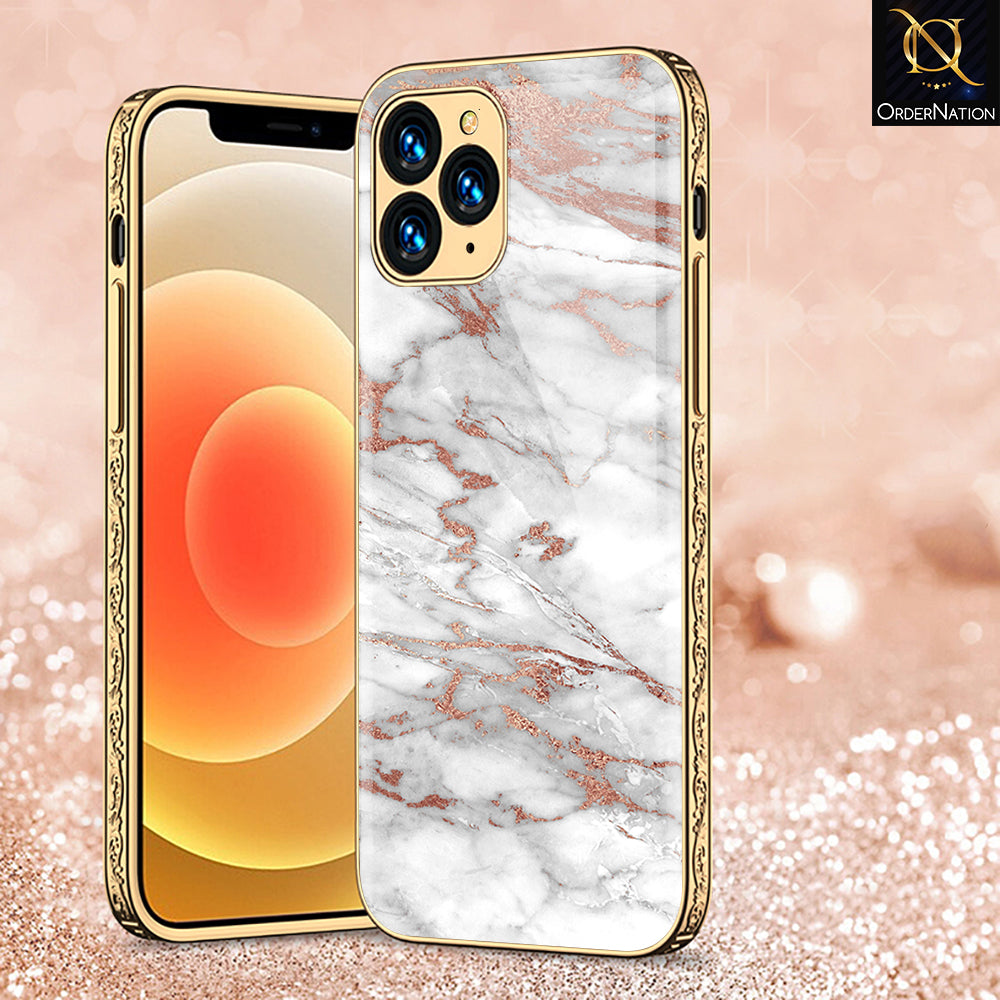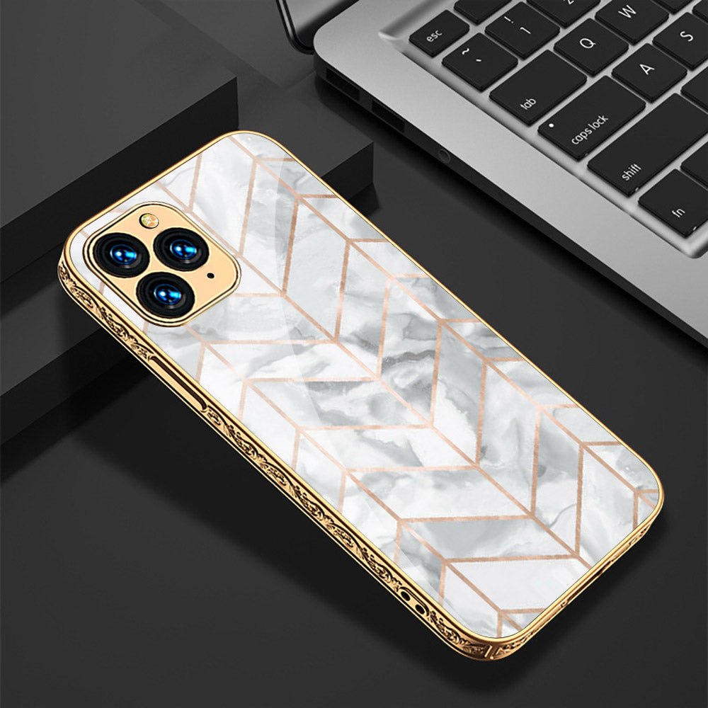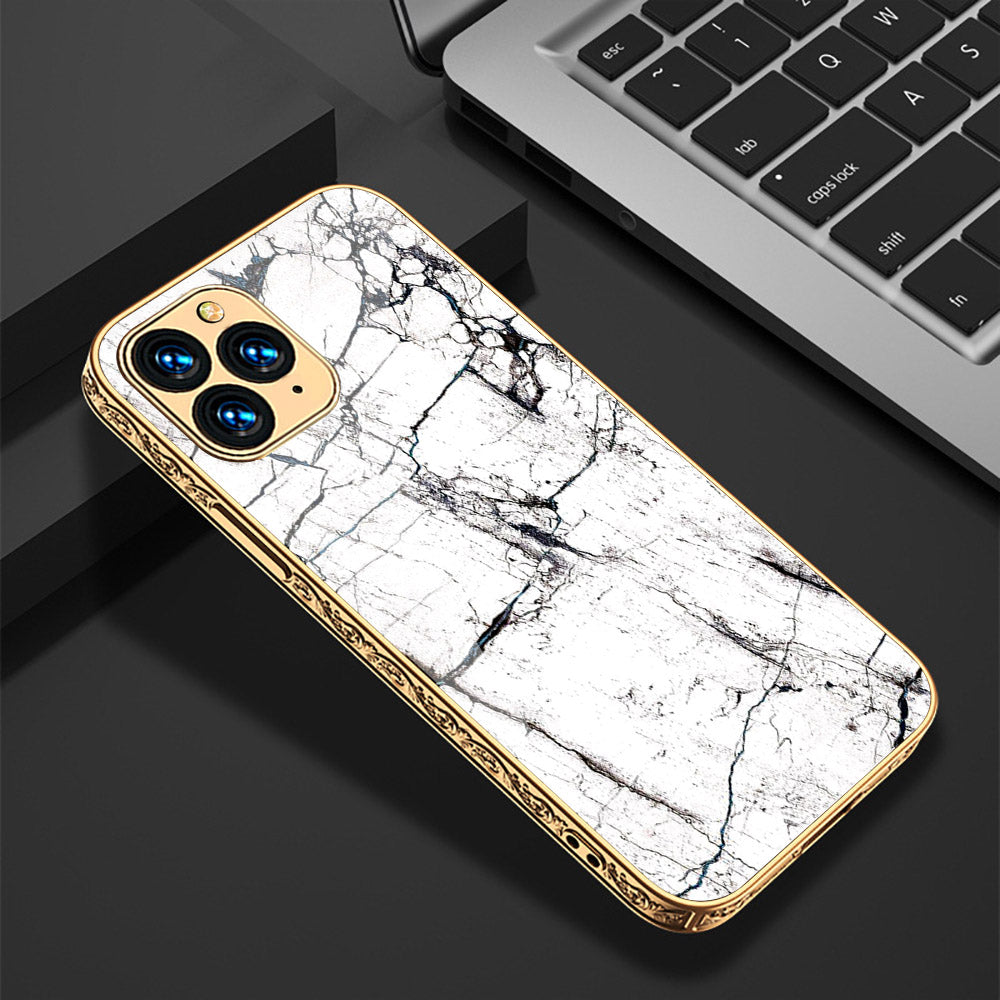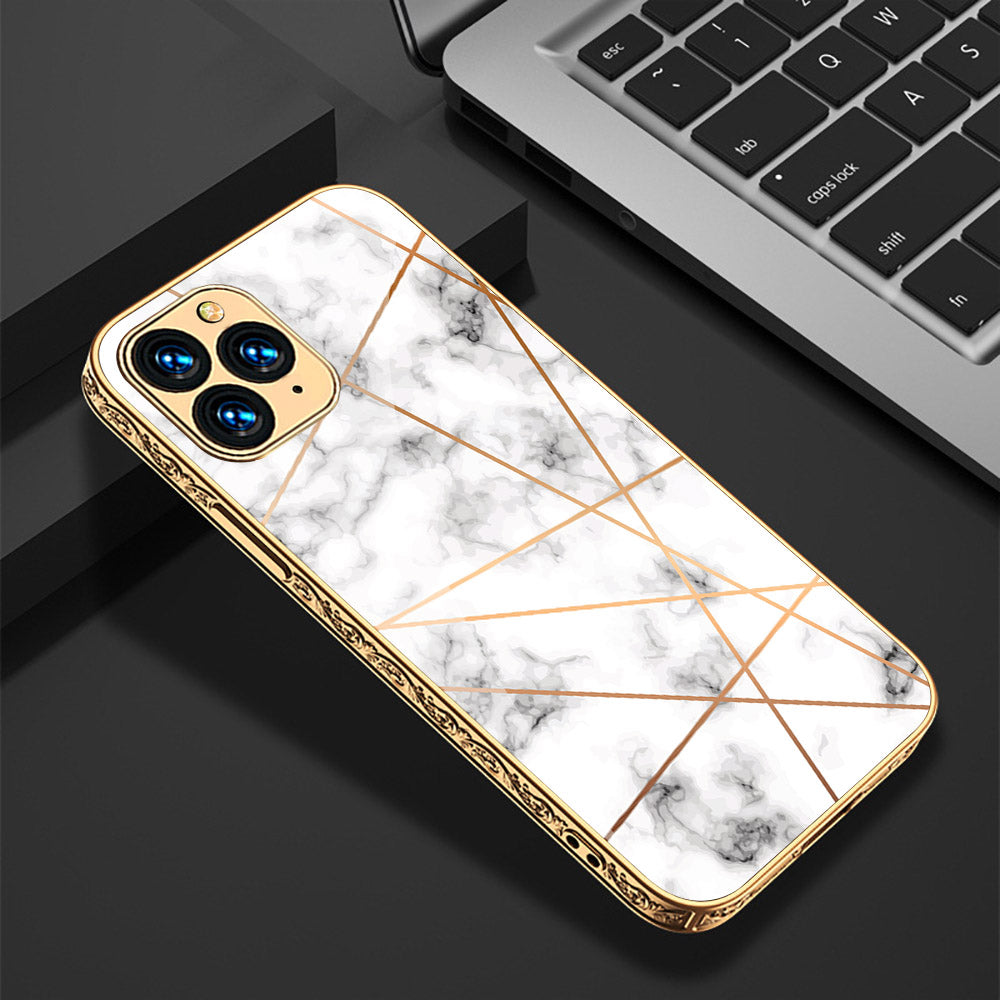 iPhone 13 Pro Max Cover - White Marble Series 2 - Premium Electroplated Shutterproof Case Soft Silicon Borders Case