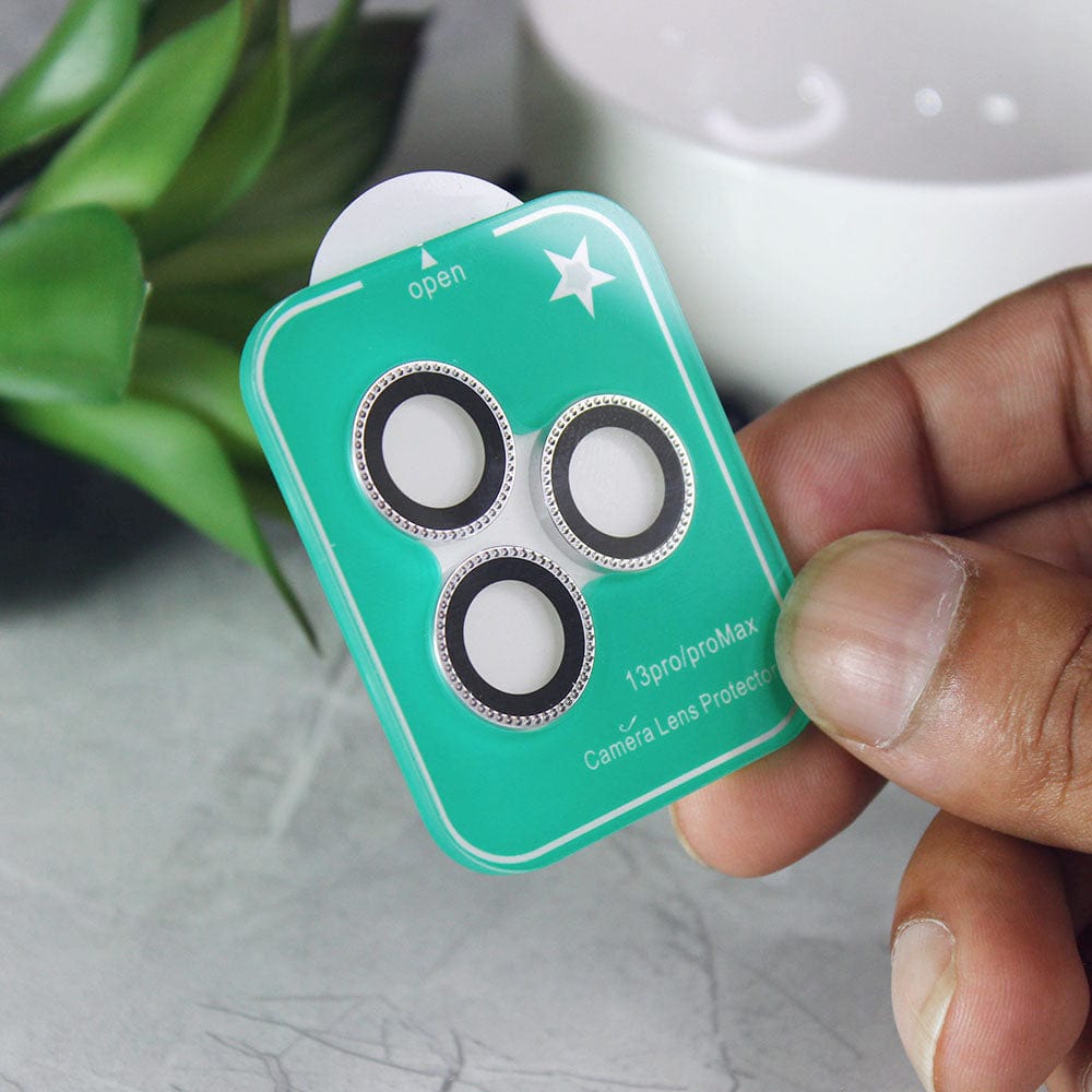 iPhone 13 Pro Max Protector - Silver - New Stylish Diamond Cut Camera Lens Scratch-Resistant Glass Protector