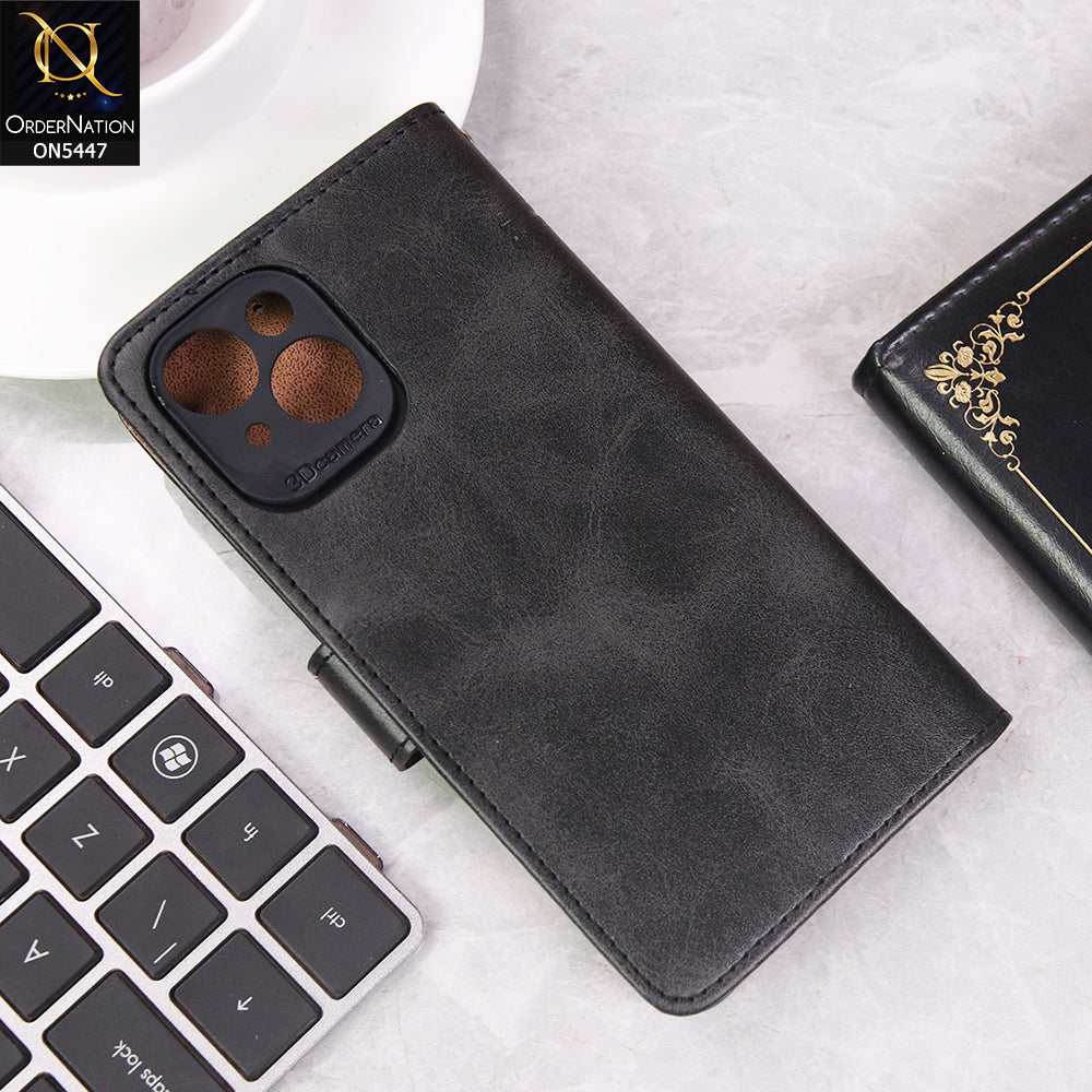 iPhone 14 Cover - Black - Premium Leather Megantic Flip Book Covers With Card Holding Option