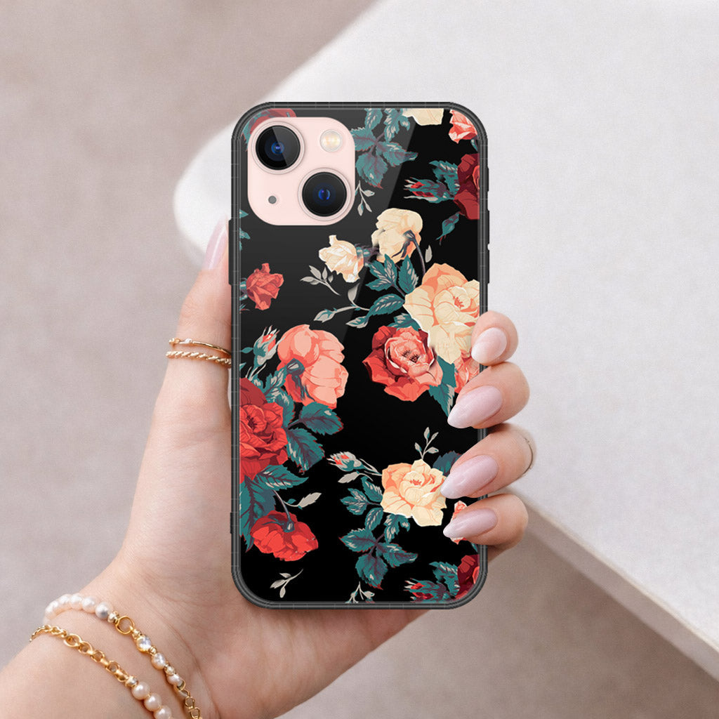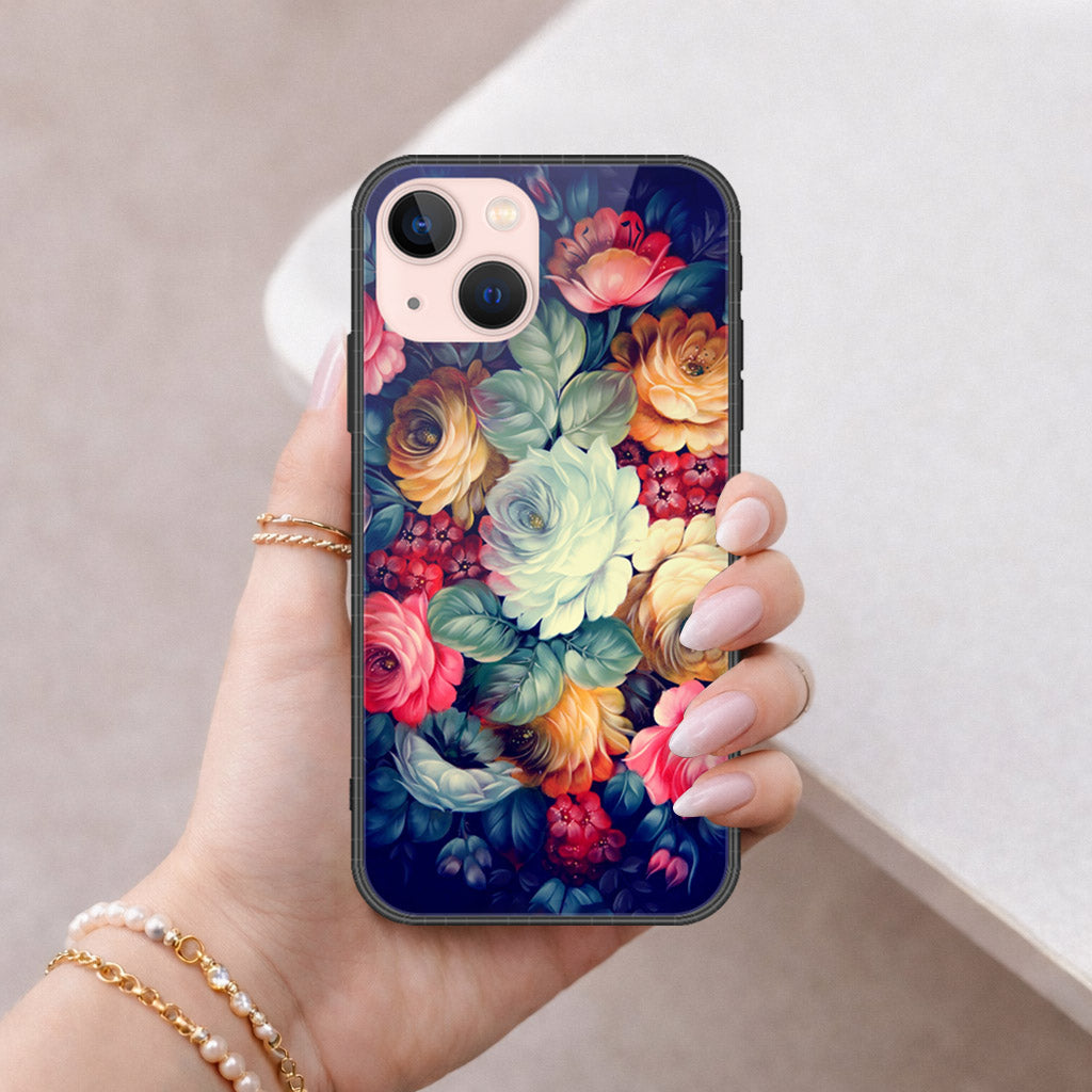 iPhone 14 - Floral Series 2 - HQ Ultra Shine Premium Infinity Glass Soft Silicon Borders Case