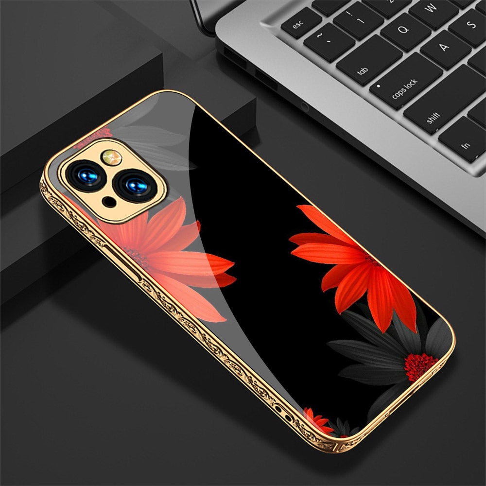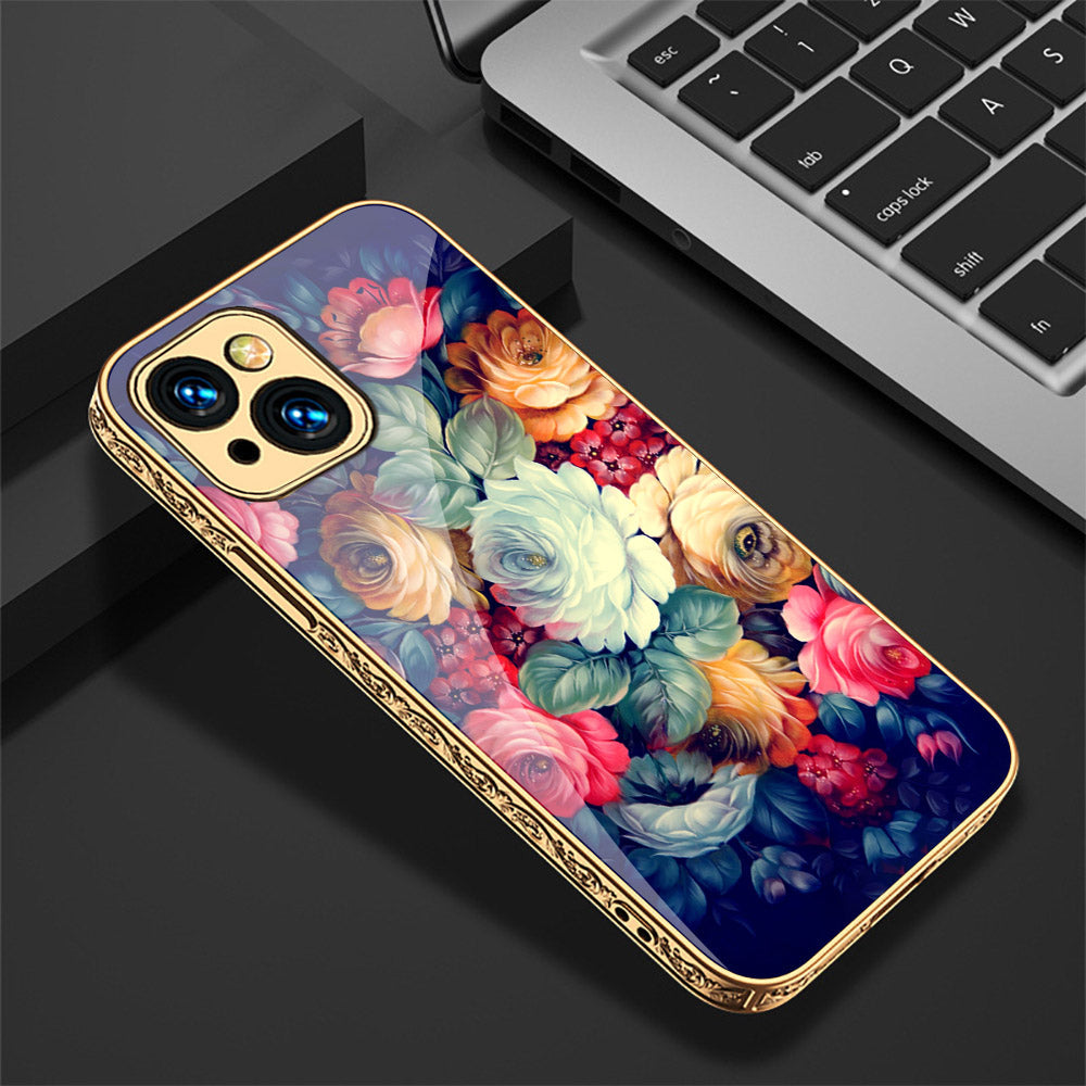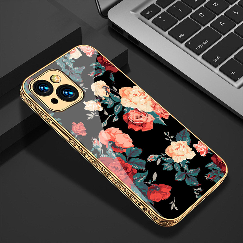 iPhone 14 Cover - Floral Series 2 - Premium Electroplated Shutterproof Case Soft Silicon Borders Case