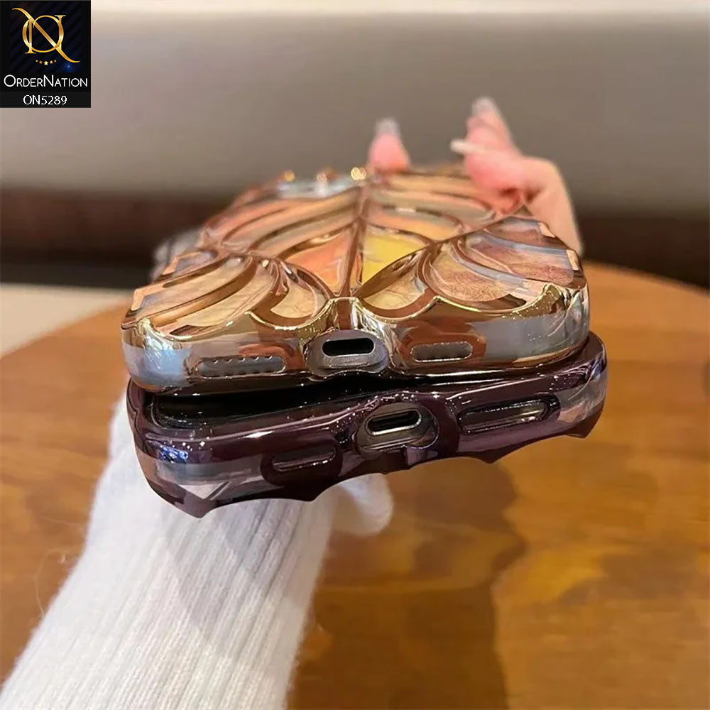 iPhone 14 Cover - Golden - Luxury 3D Colorful Maple Leaf Electroplatiang Wavy Soft Border Case