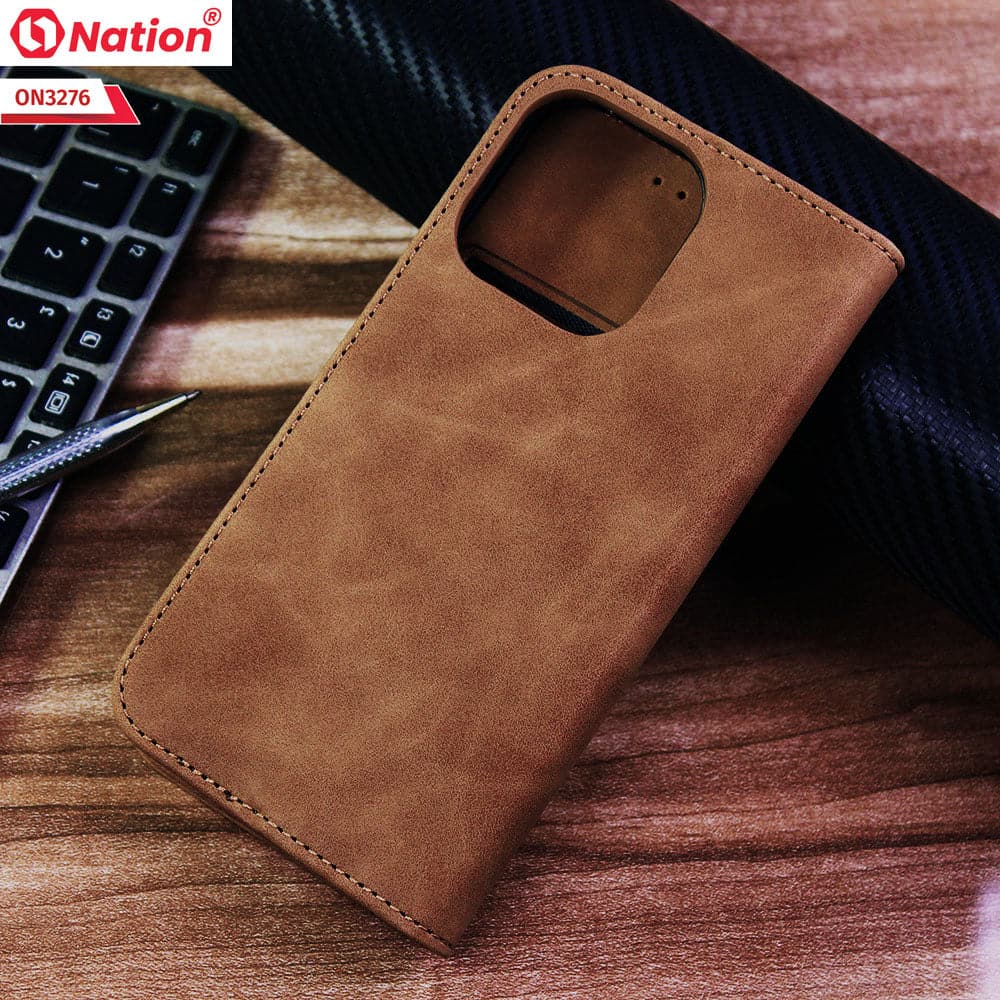 iPhone 14 Plus Cover - Light Brown - ONation Business Flip Series - Premium Magnetic Leather Wallet Flip book Card Slots Soft Case