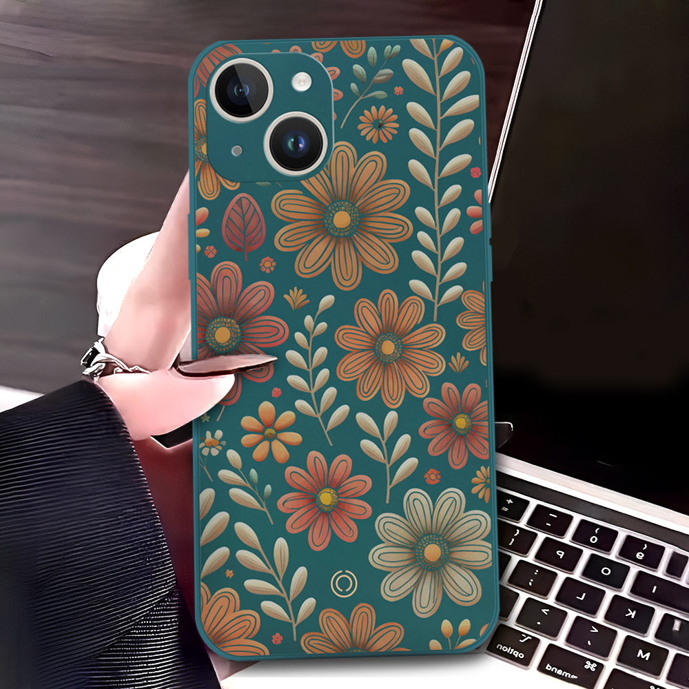 iPhone 14 Pro Cover - Dark Green - D4 - ONation Floral Series - HQ Liquid Silicone Soft Case