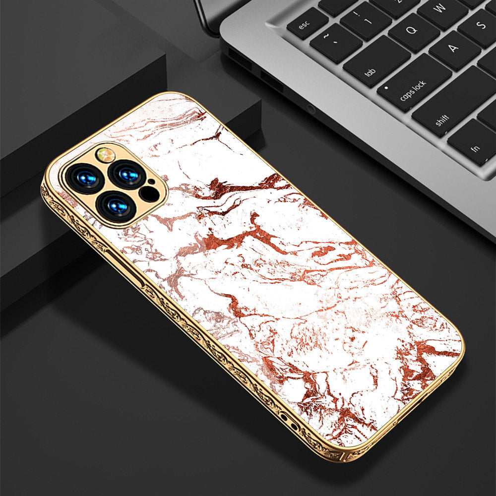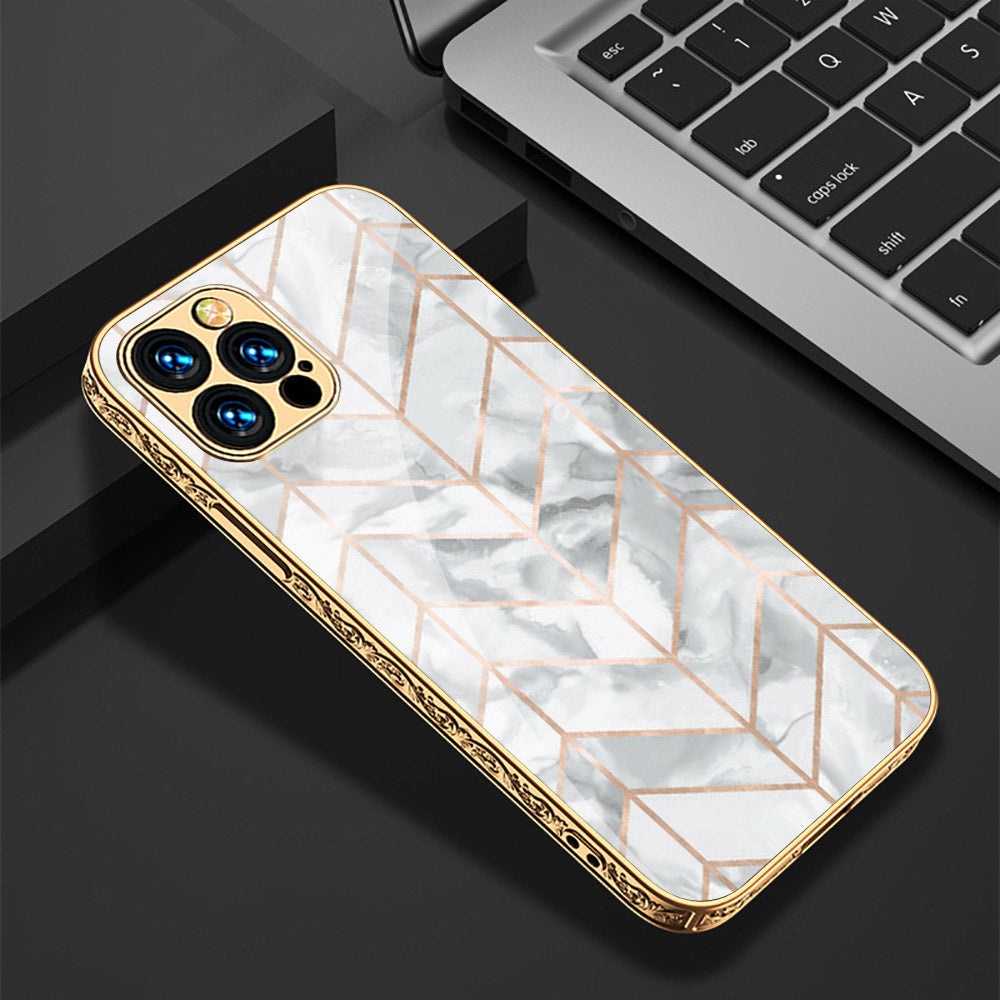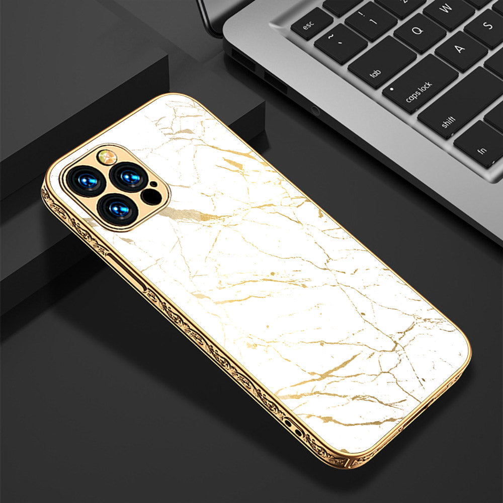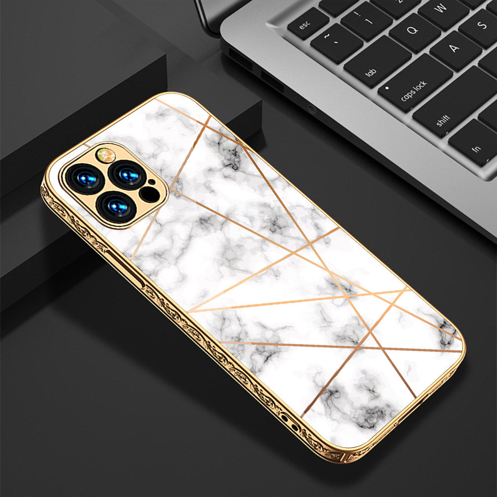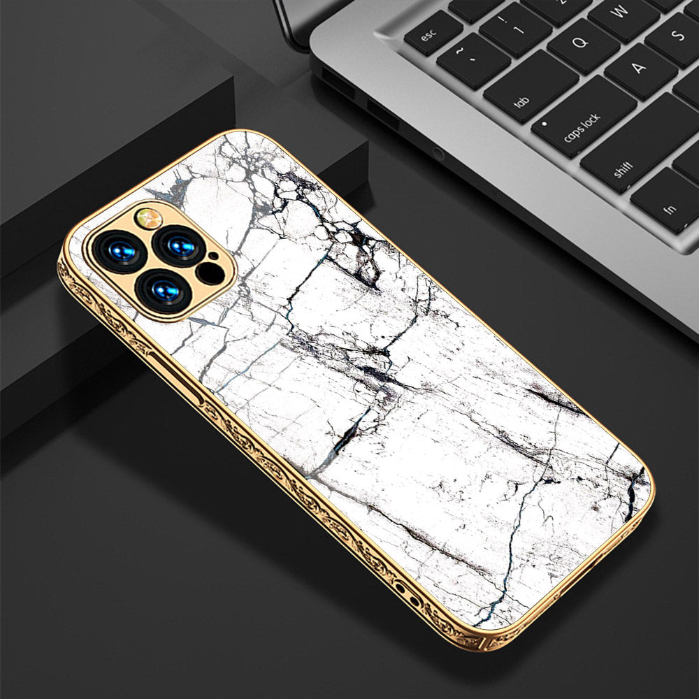iPhone 14 Pro Cover - White Marble Series 2 - Premium Electroplated Shutterproof Case Soft Silicon Borders Case