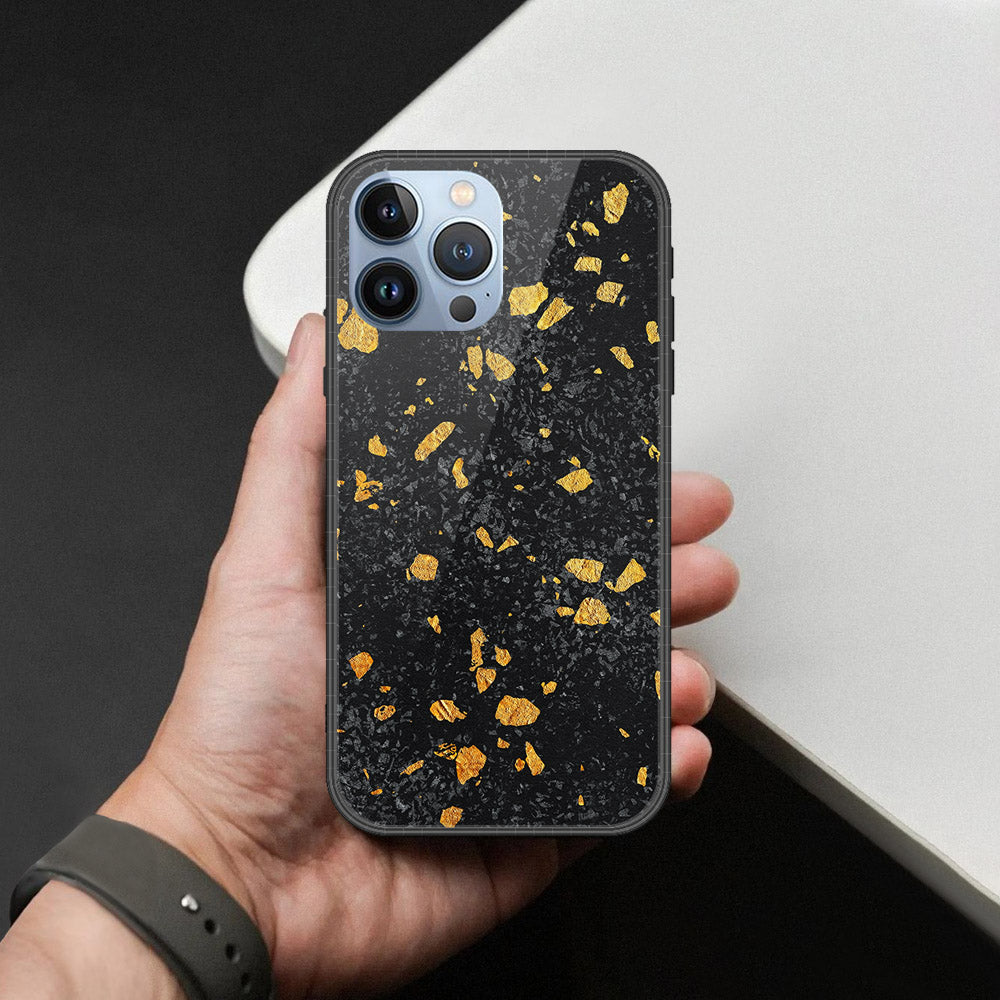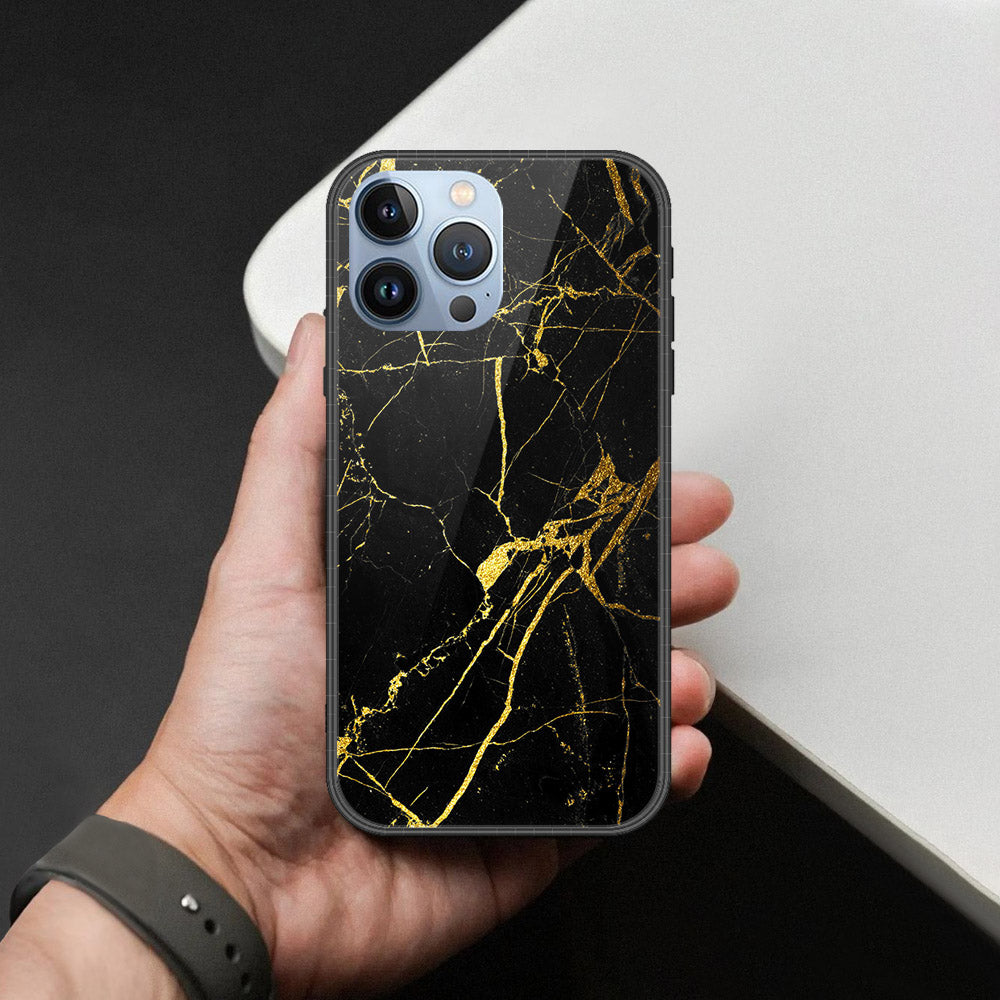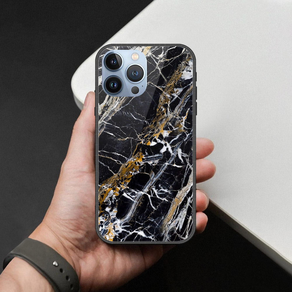 iPhone 14 Pro Max Cover - Black Marble Series  - HQ Ultra Shine Premium Infinity Glass Soft Silicon Borders Case