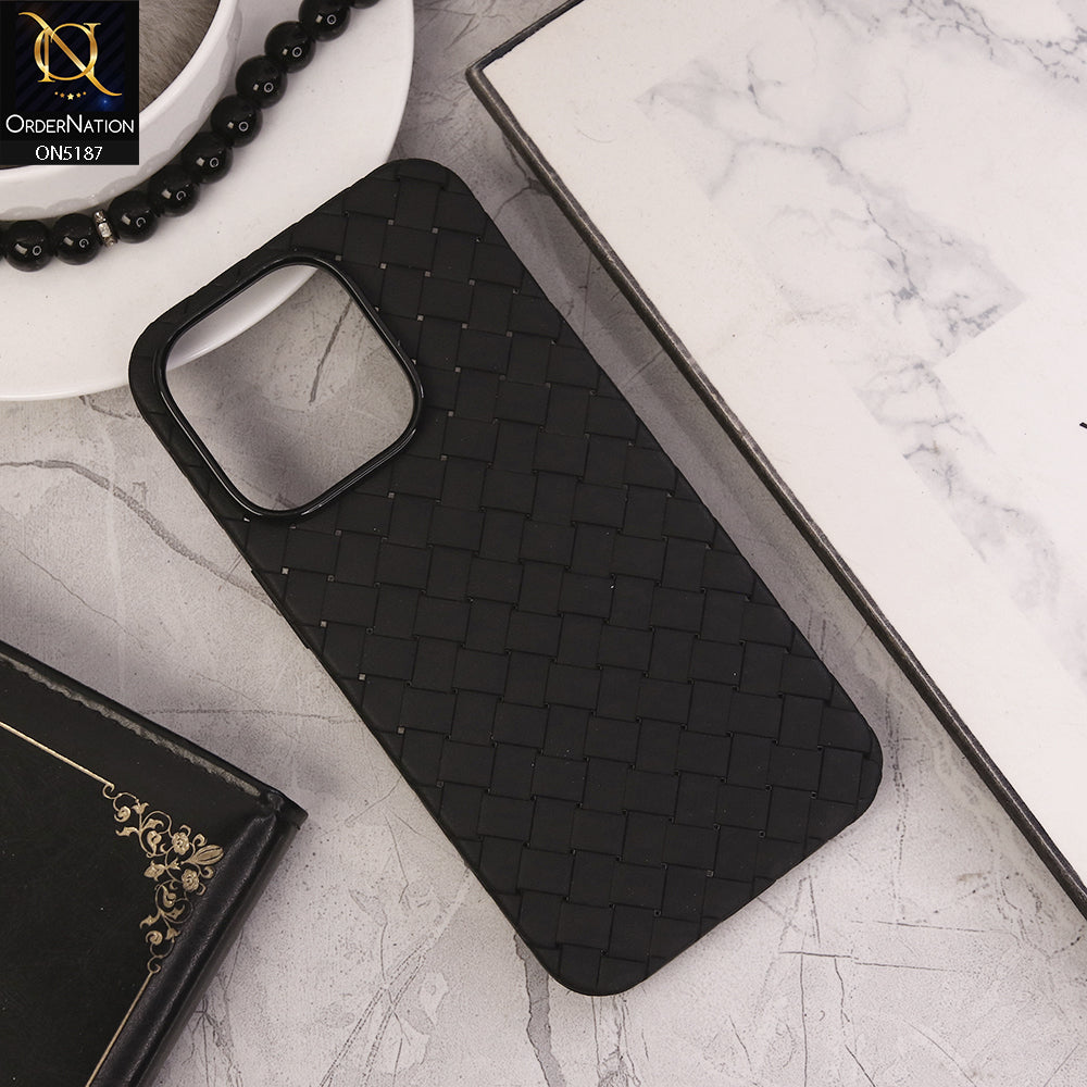 iPhone 14 Pro Max Cover - Black - New Woven Design Leather Feel Soft TPU Case