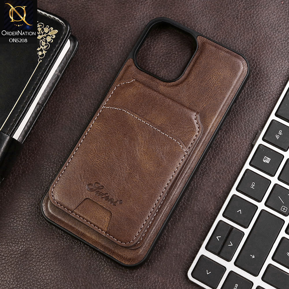 iPhone 14 Pro Max Cover - Brown - Luxuary Leather Case with Magnetic Wallet and Kick Stand Holder