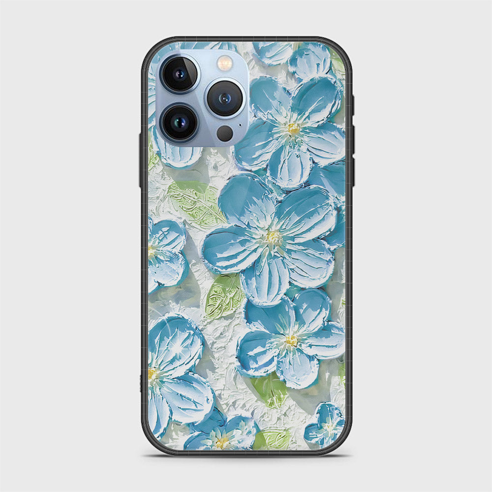 iPhone 14 Pro Max Cover - Floral Series - Design 12 - Grey & Green - HQ Ultra Shine Premium Infinity Glass Soft Silicon Borders Case