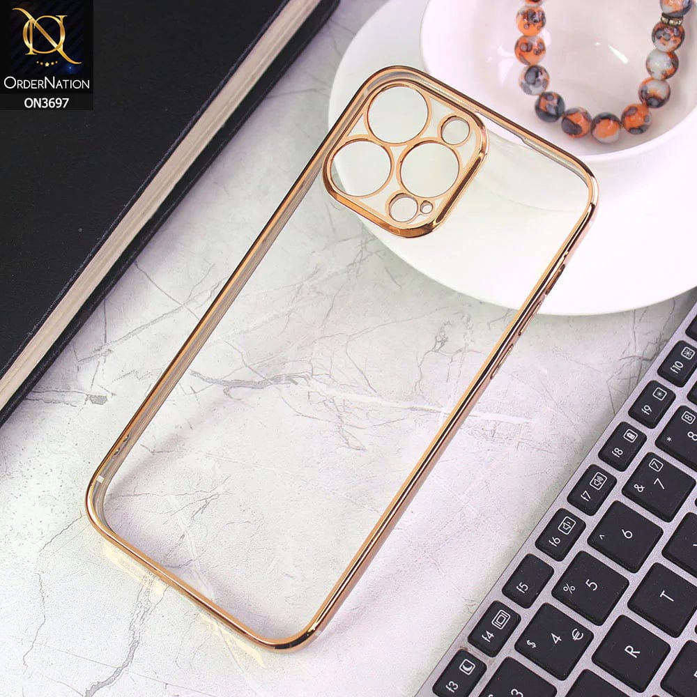 iPhone 14 Pro Max Cover - Golden - Luxury Look Colour Borders Semi -Transparent Soft Silicone Case With Camera Protection