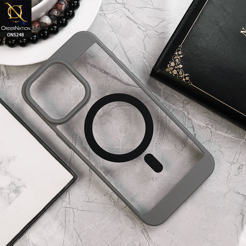 iPhone 14 Pro Max Cover - Gray - New Clear Transparent Back Magsafe Candy Color Soft Borders Case