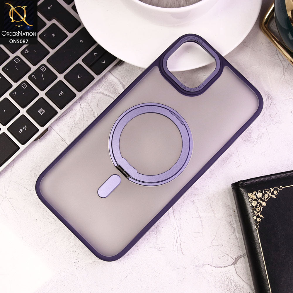 iPhone 15 Cover - Purple - New Translucent 360 Degree Rotation Magnatic Bracket Stand Soft Borders Shell Case