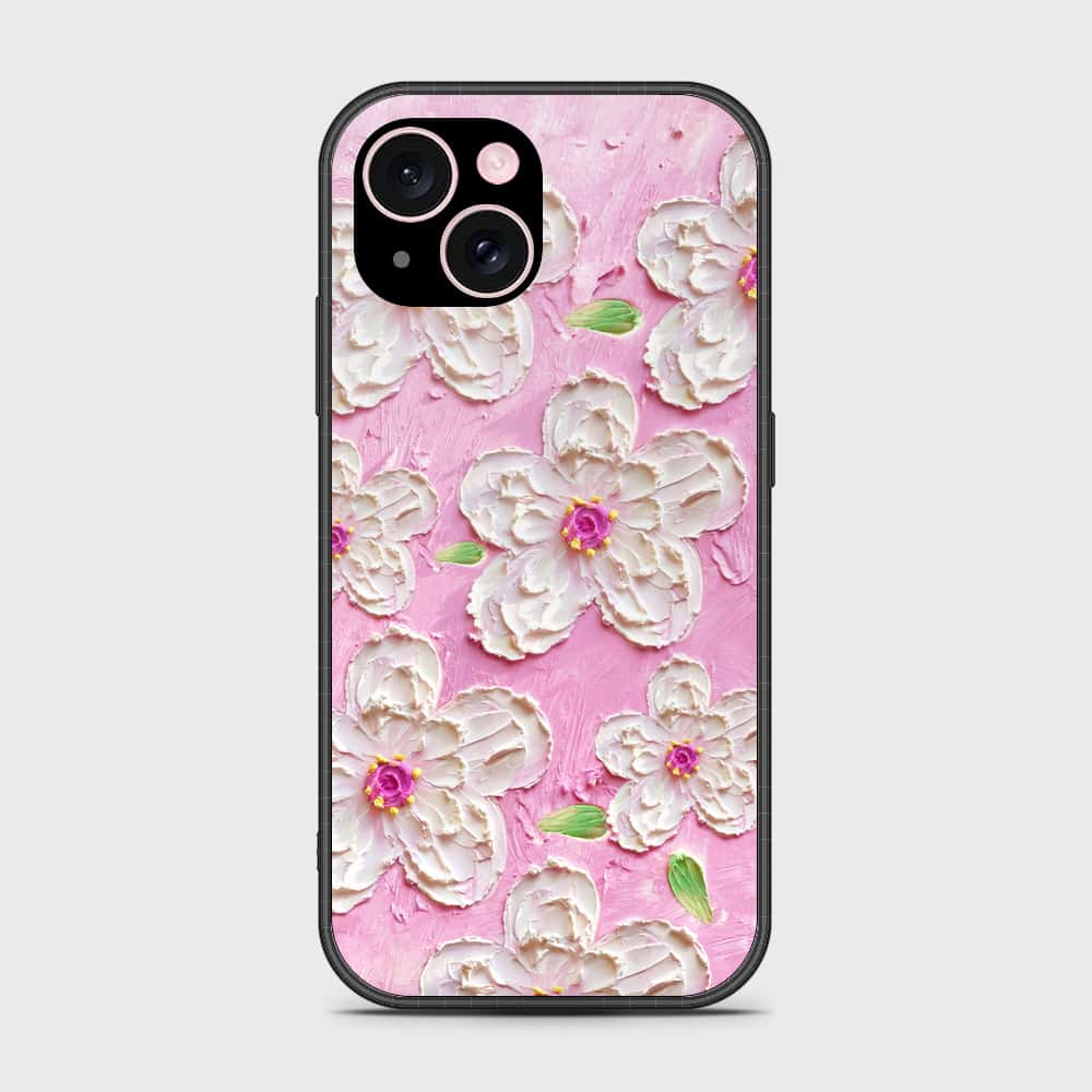 iPhone 15 Plus Cover - Floral Series - Design 5 - Pink & White - HQ Ultra Shine Premium Infinity Glass Soft Silicon Borders Case