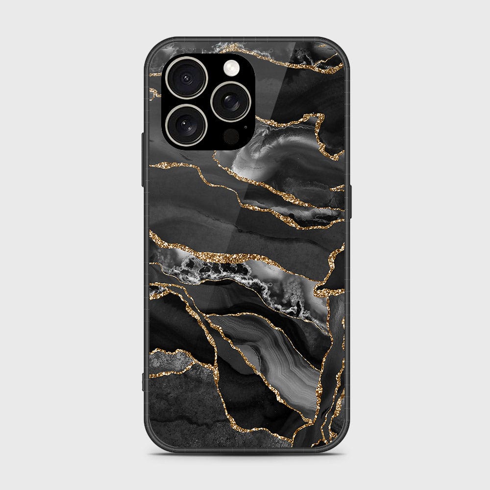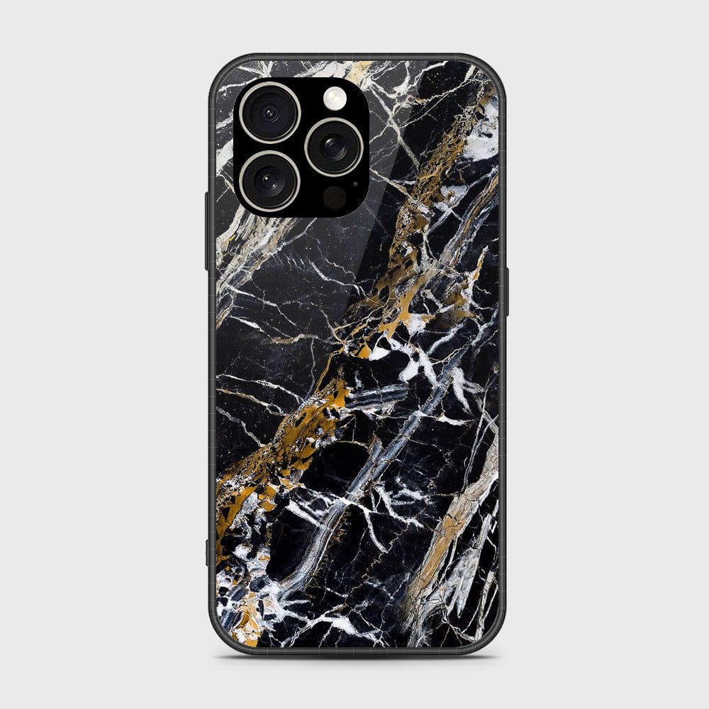 iPhone 15 Pro Cover- Black Marble Series - HQ Ultra Shine Premium Infinity Glass Soft Silicon Borders Case
