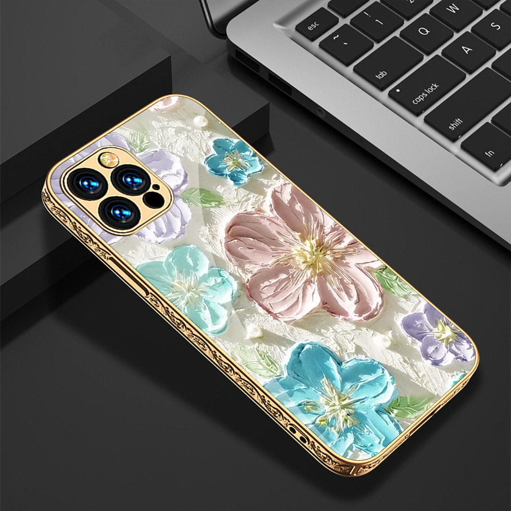 iPhone 15 Pro Cover - Floral Series - Premium Electroplated Shutterproof Case Soft Silicon Borders Case