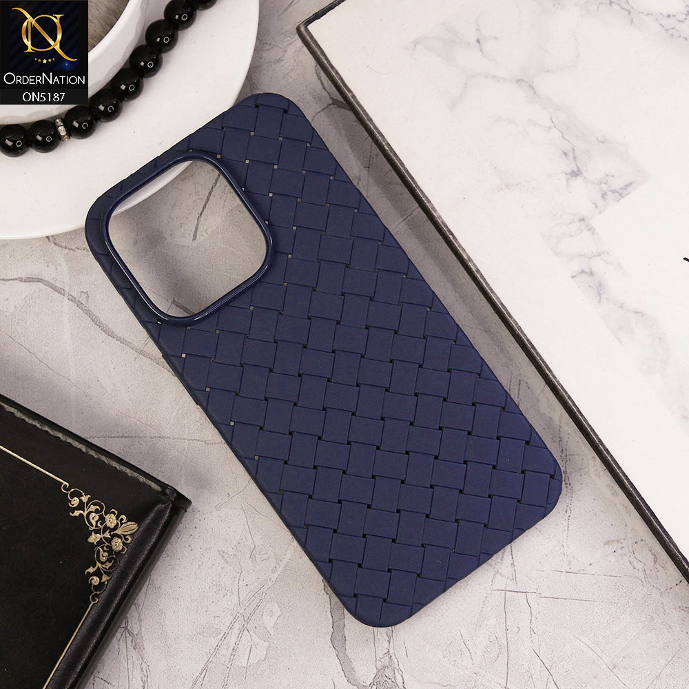 iPhone 15 Pro Max Cover - Blue - New Woven Design Leather Feel Soft TPU Case