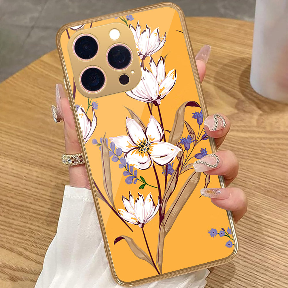 iPhone 15 Pro Max - Floral Series - HQ Premium Shine Durable Golden Electroplate Case