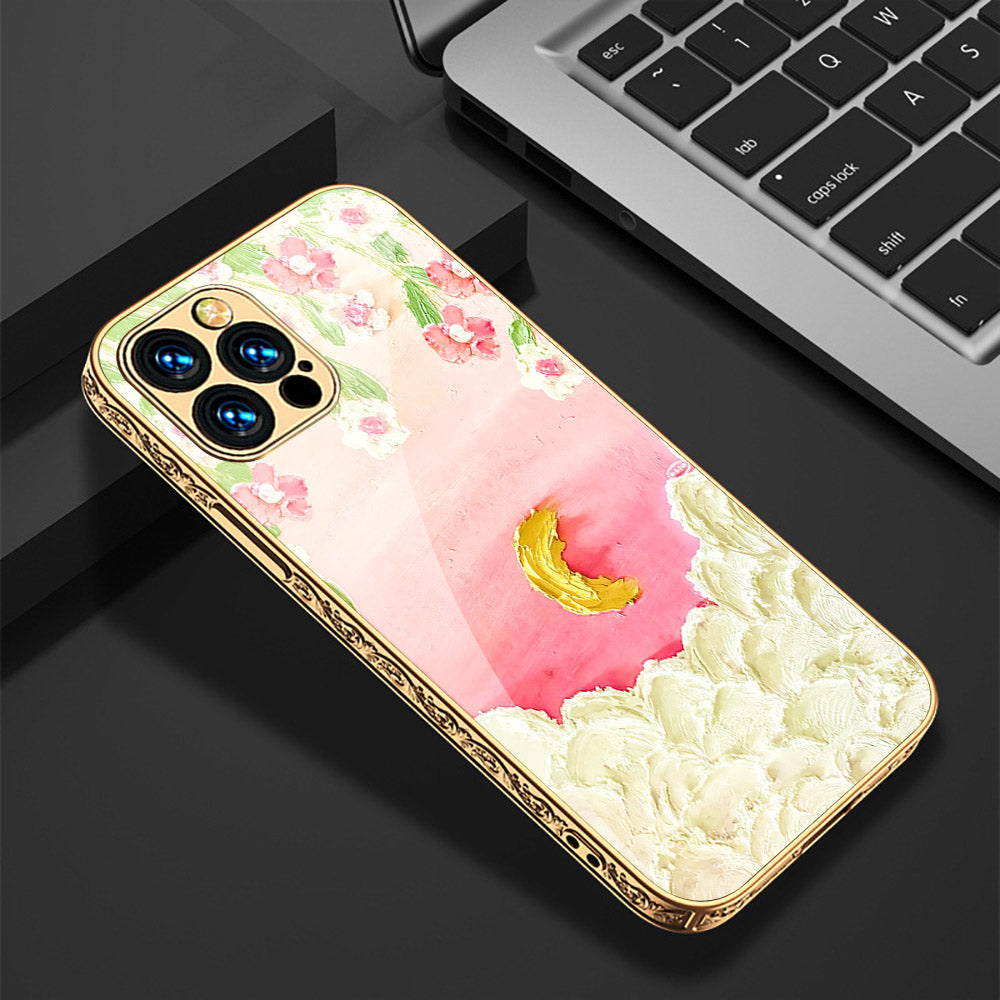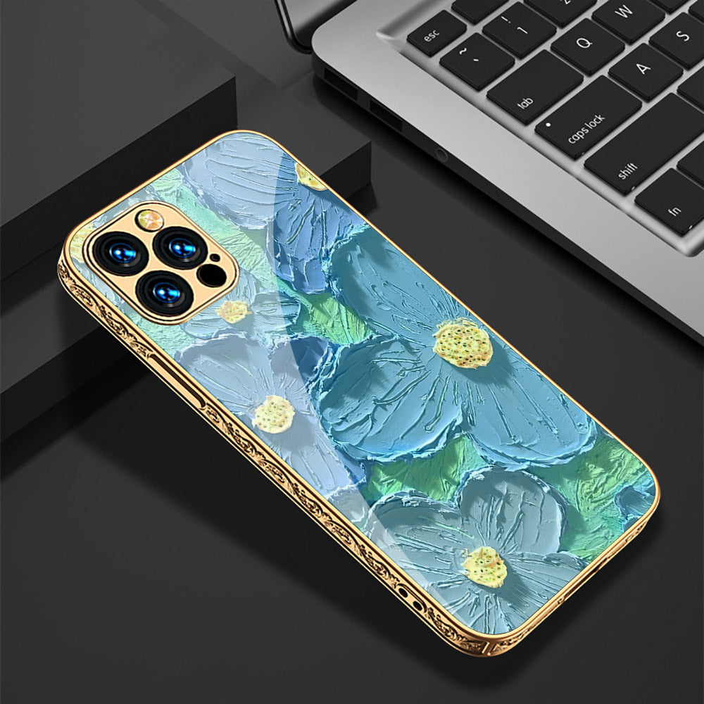 iPhone 15 Pro Max Cover - Floral Series - Premium Electroplated Shutterproof Case Soft Silicon Borders Case
