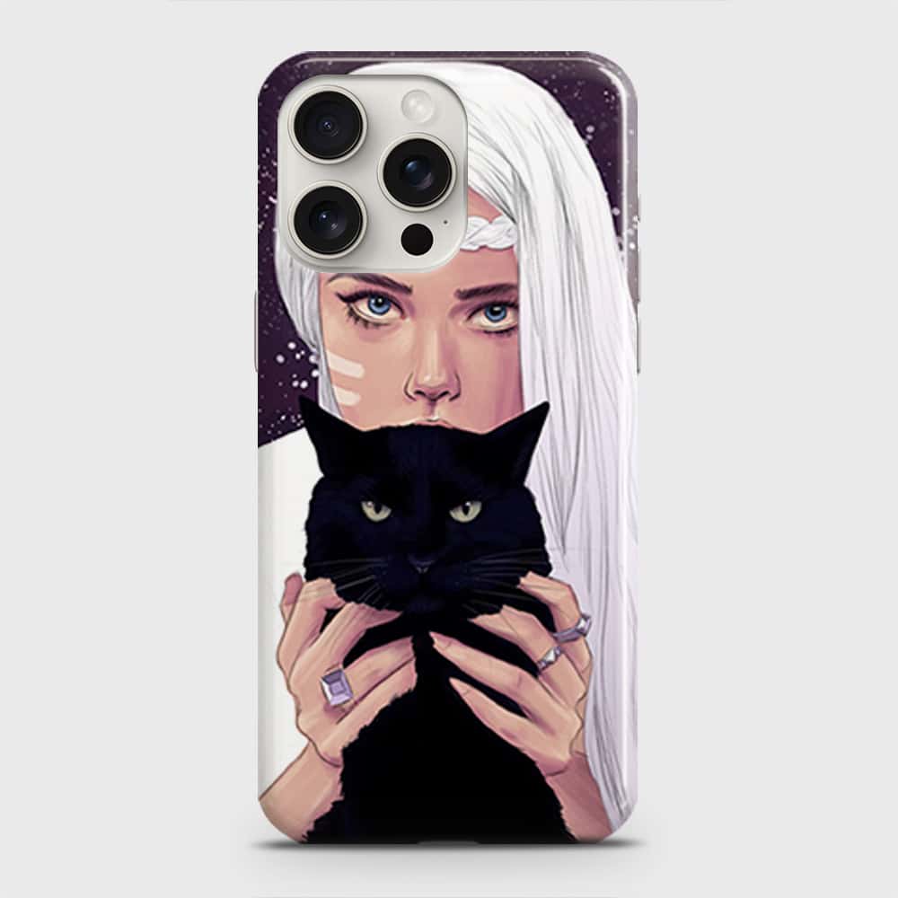 iPhone 15 Pro Max Cover - Trendy Wild Black Cat Printed Hard Case with Life Time Colors Guarantee