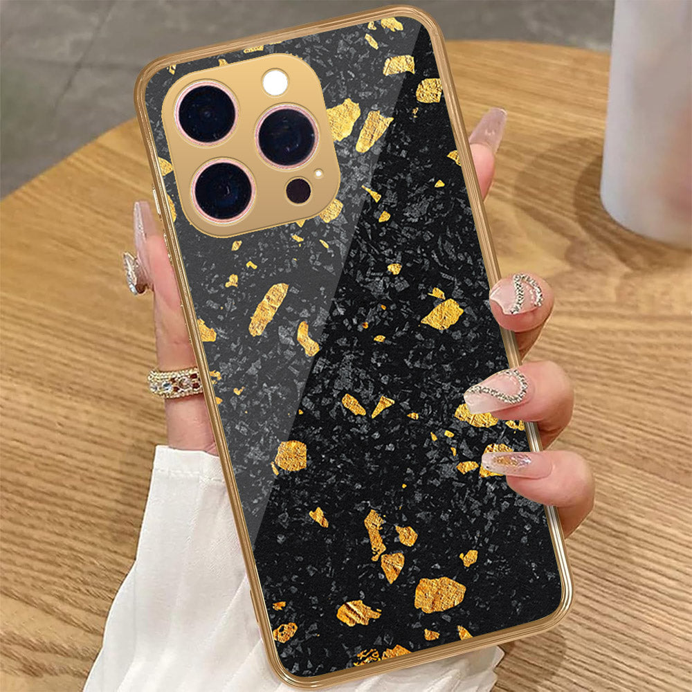 iPhone 16 Pro - Black Marble Series - HQ Premium Shine Durable Golden Electroplate Case