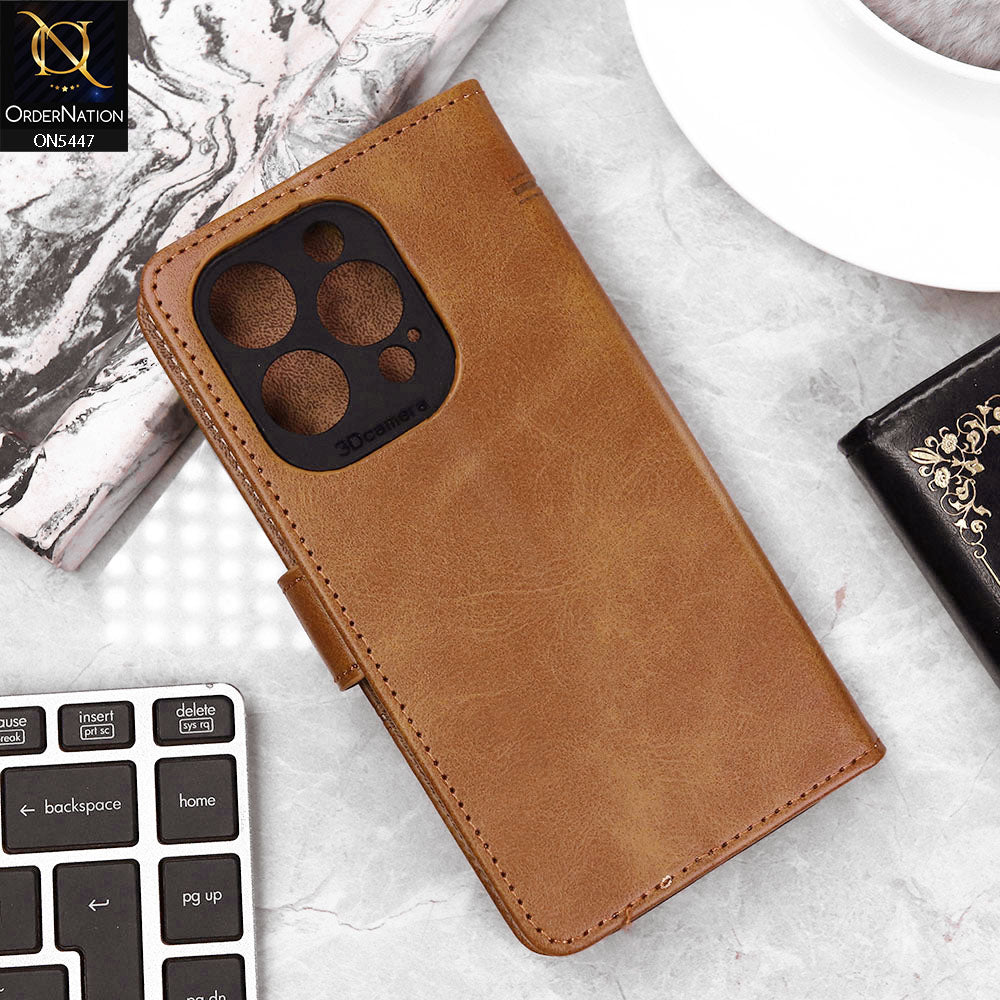 iPhone 16 Pro Cover - Light Brown - Premium Leather Megantic Flip Book Covers With Card Holding Option
