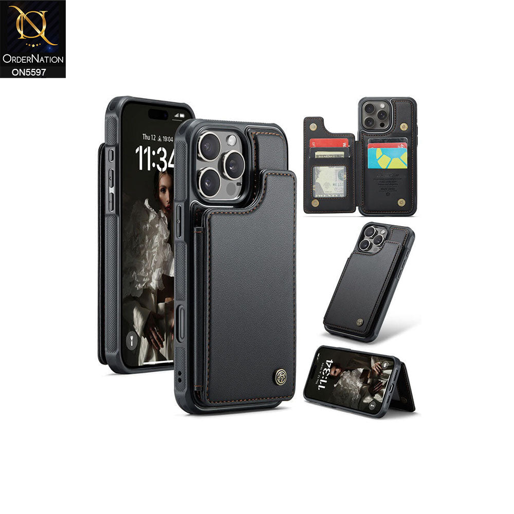 iPhone 16 Pro Max Cover - Black -  CaseMe Premium Wallet Case with RFID Blocking & Kickstand Black
