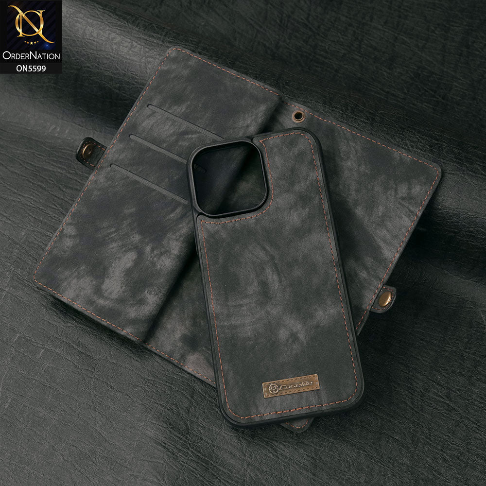 iPhone 16 Pro Max Cover - Black -  New Premium CaseMe  Detachable Folio Zipper Purse Leather Wallet Case with 8 Card Slots