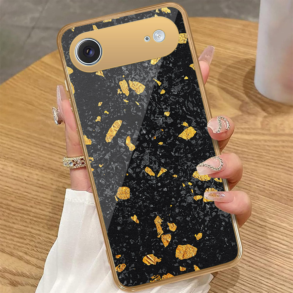 iPhone 17 Air - Black Marble Series - HQ Premium Shine Durable Golden Electroplate Case