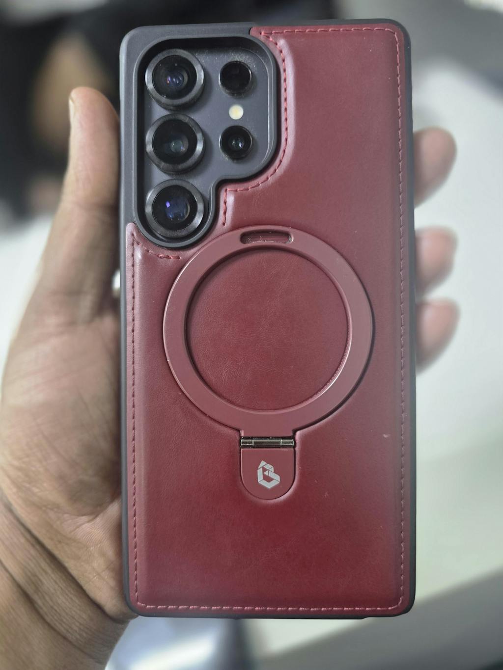 iPhone 17 Pro Max Cover - Maroon -  Luxury Leather Case Supports Magsafe Wireless Charging, Kickstand Bracket Holder Soft Border Case