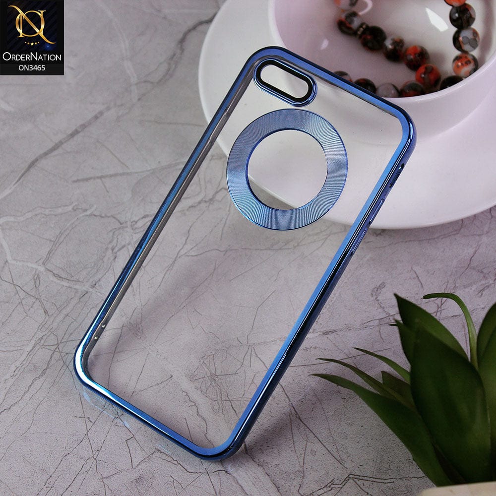 iPhone 8 / 7 Cover - Blue - Soft Color Borders Logo Hole With Camera Protection Clear Back Case