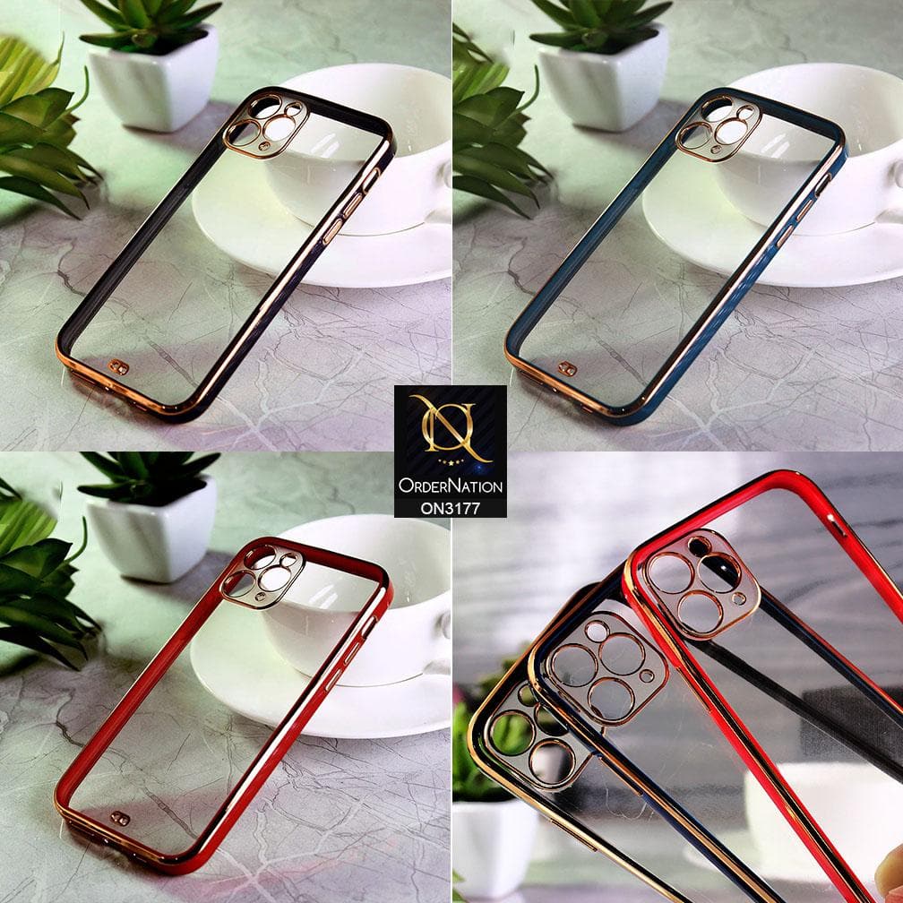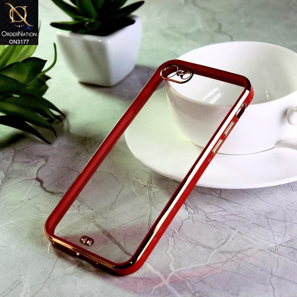 iPhone SE 2020 Cover - Red - Eletroplating Soft Square Straight Edge Transparent Soft Case With Camera Protection