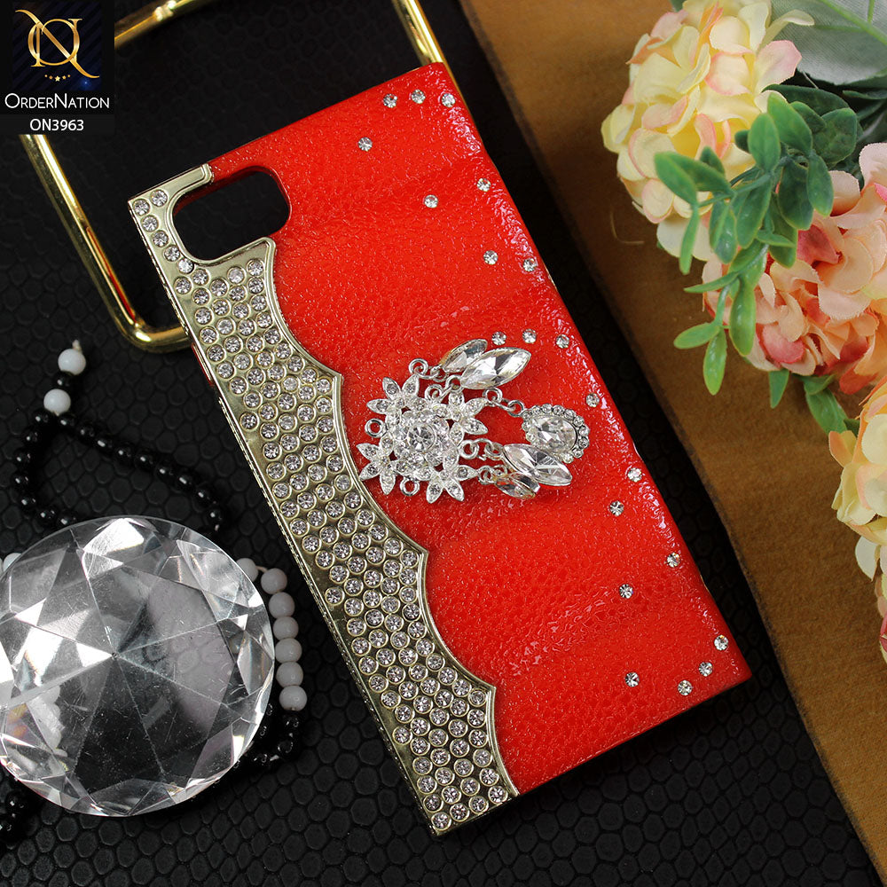 iPhone SE 2020 Cover - Red - Fashion Stylish Bling Bling Case Leather Texture Protective Case