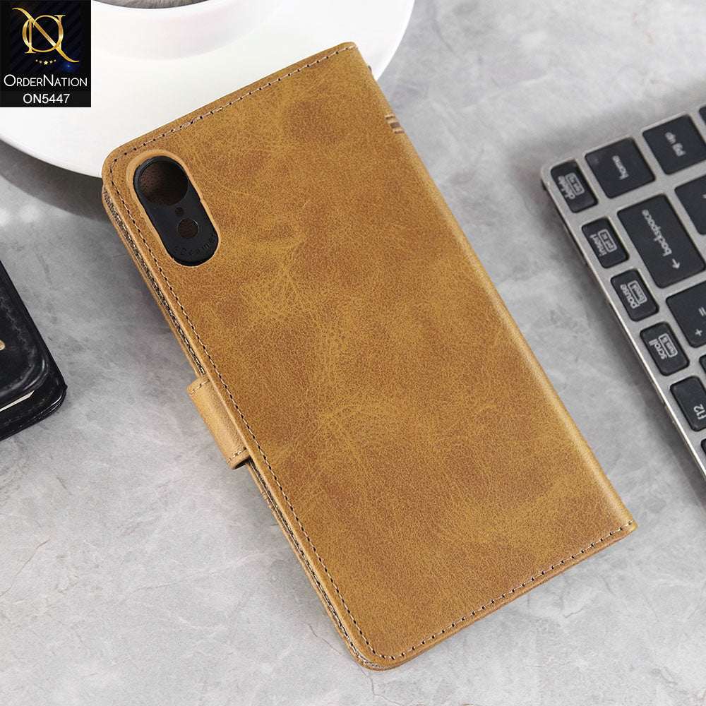 iPhone XR Cover - Light Brown -  Premium Leather Megantic Flip Book Covers With Card Holding Option